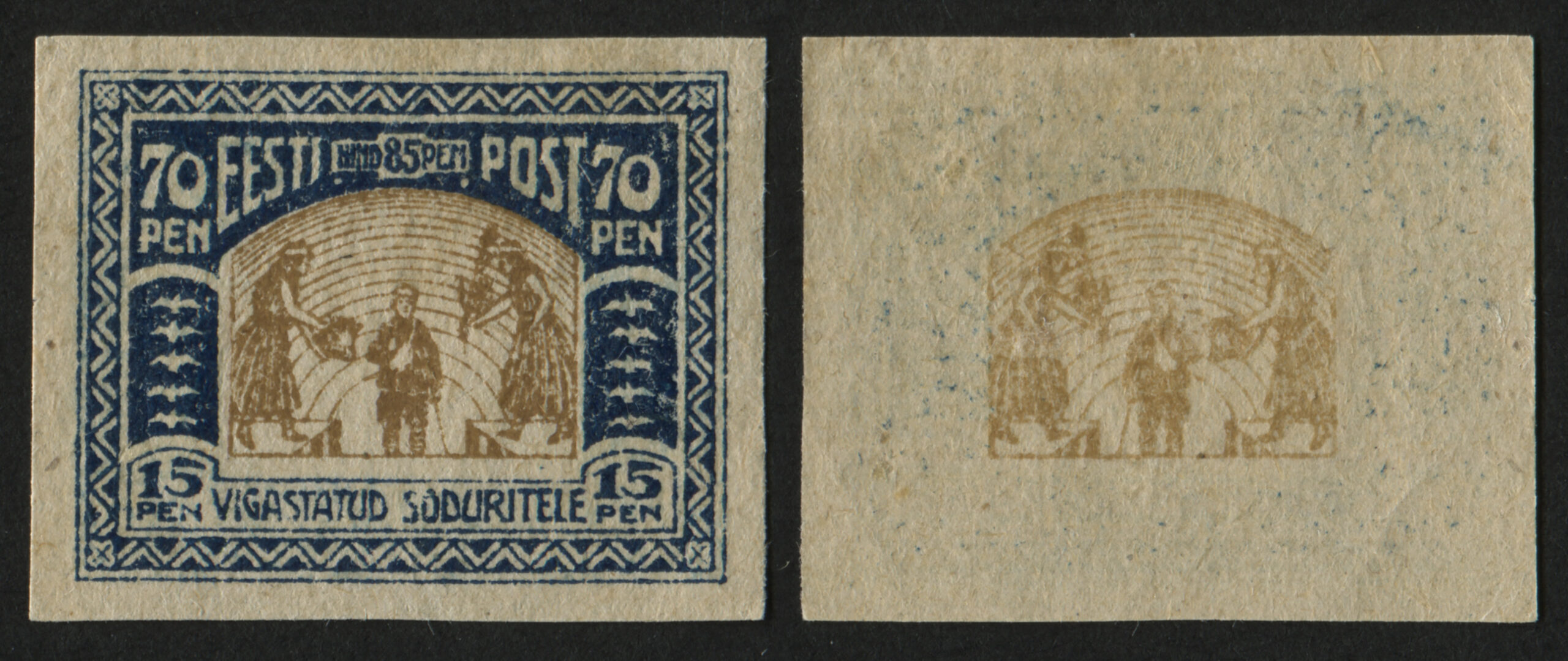 Vigastatud sõduritele Eesti esimesed juurdemaksuga margid „Vigastatud sõduritele“ anti välja 22. juunil 1920 (70 + 15 penni) ja 26. juunil 1920 (35 + 10 p). Need kehtisid kuni 30. juunini 1926. Sügisel 1920 tehti postmarkidele ületrükk. 6. oktoobril tulid käibele margid ületrükiga 2 marka (70 + 15 p) ja 6. novembril ületrükiga 1 mark (35 + 10 p). Markide postimüük toimus kuni 31. detsembrini 1921, ilma lisamaksuta võeti need taaskasutusele 27. aprillil 1922. Margid nominaaliga 1 mark kehtisid 31. märtsini 1926 ja 2 marka kuni 31. detsembrini 1940.