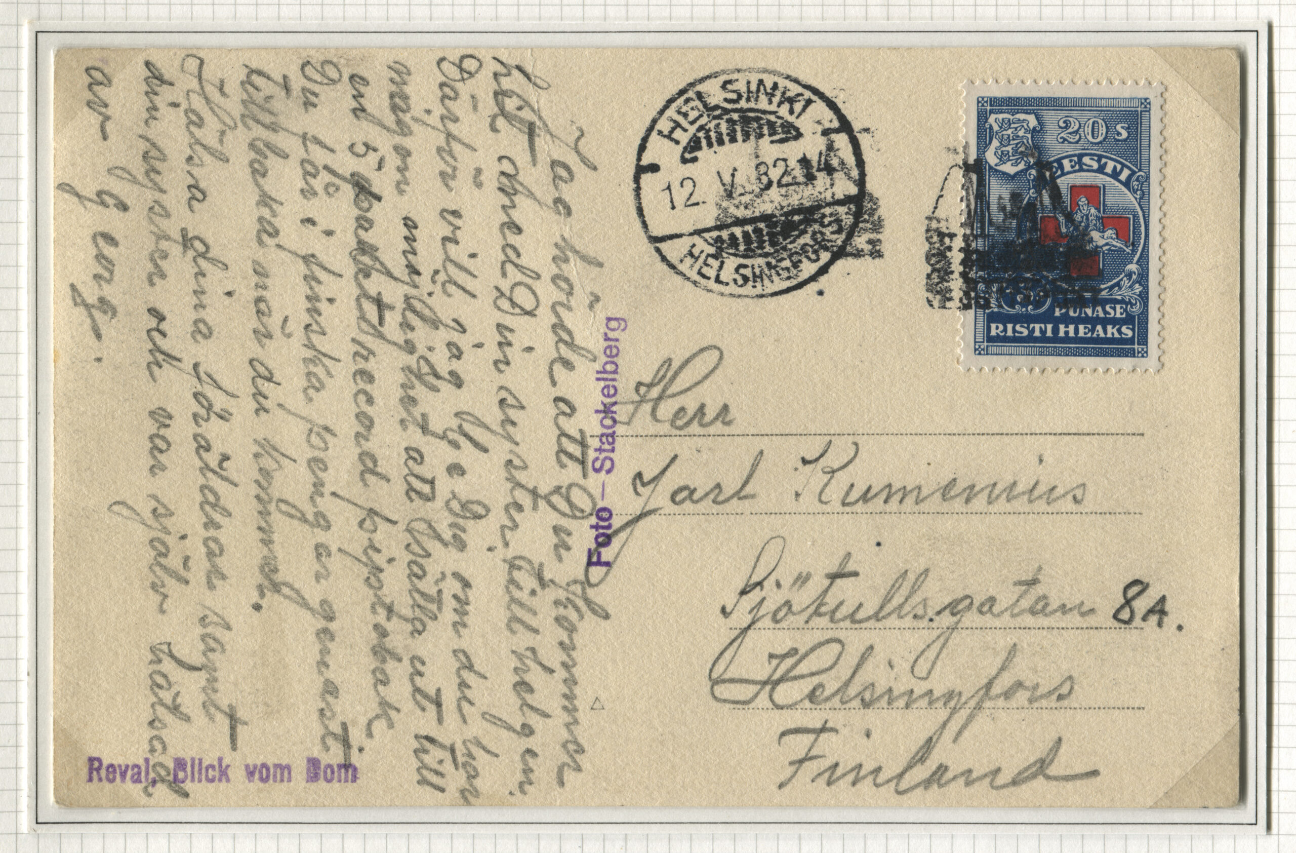 ErakoguTähitud kiri Tallinnast 15.02.1932 Helsingisse 18.02.1932.