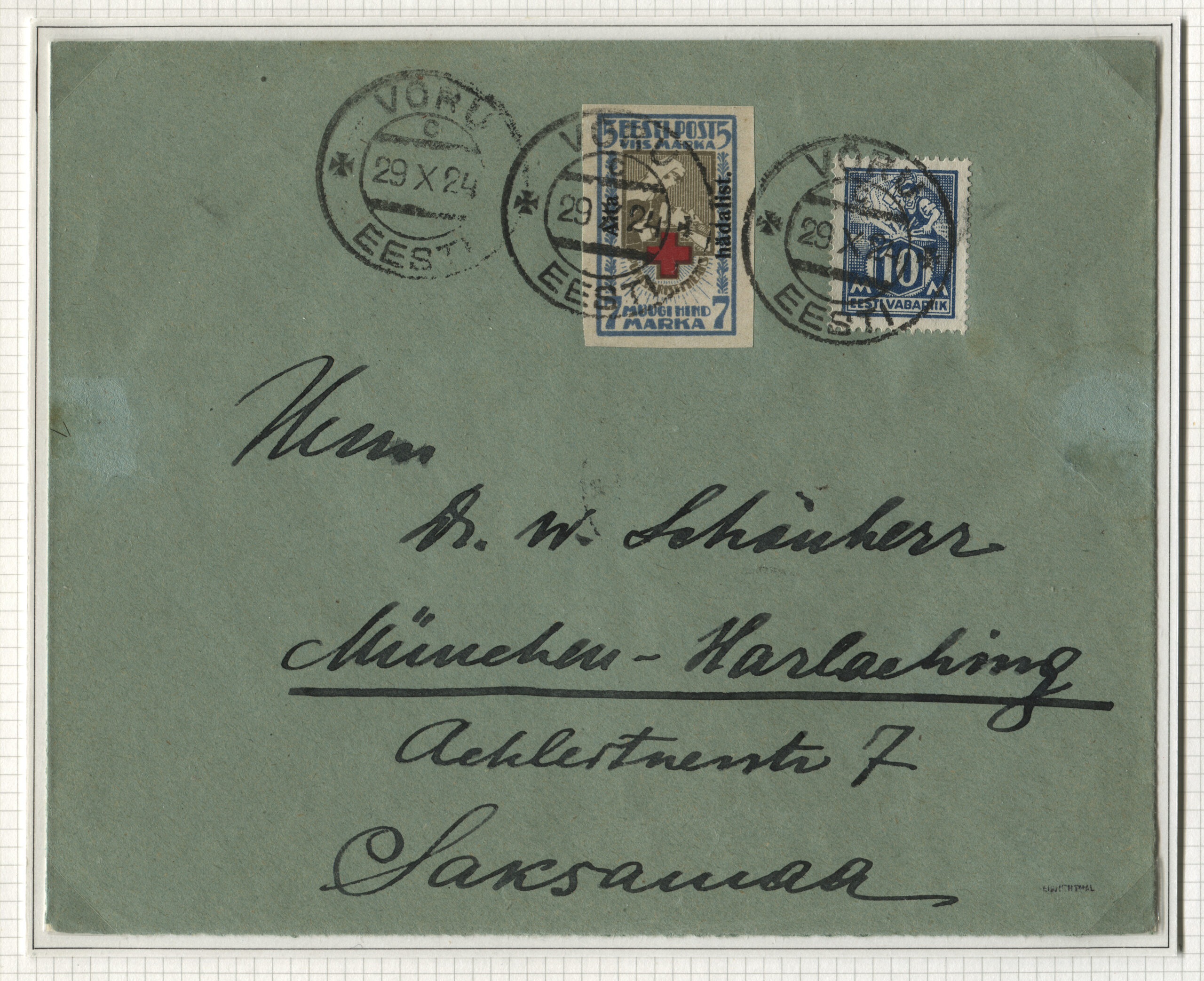 ERMi koguTähitud kiri on saadetud Võrust 29.10.1924 Münchenisse.