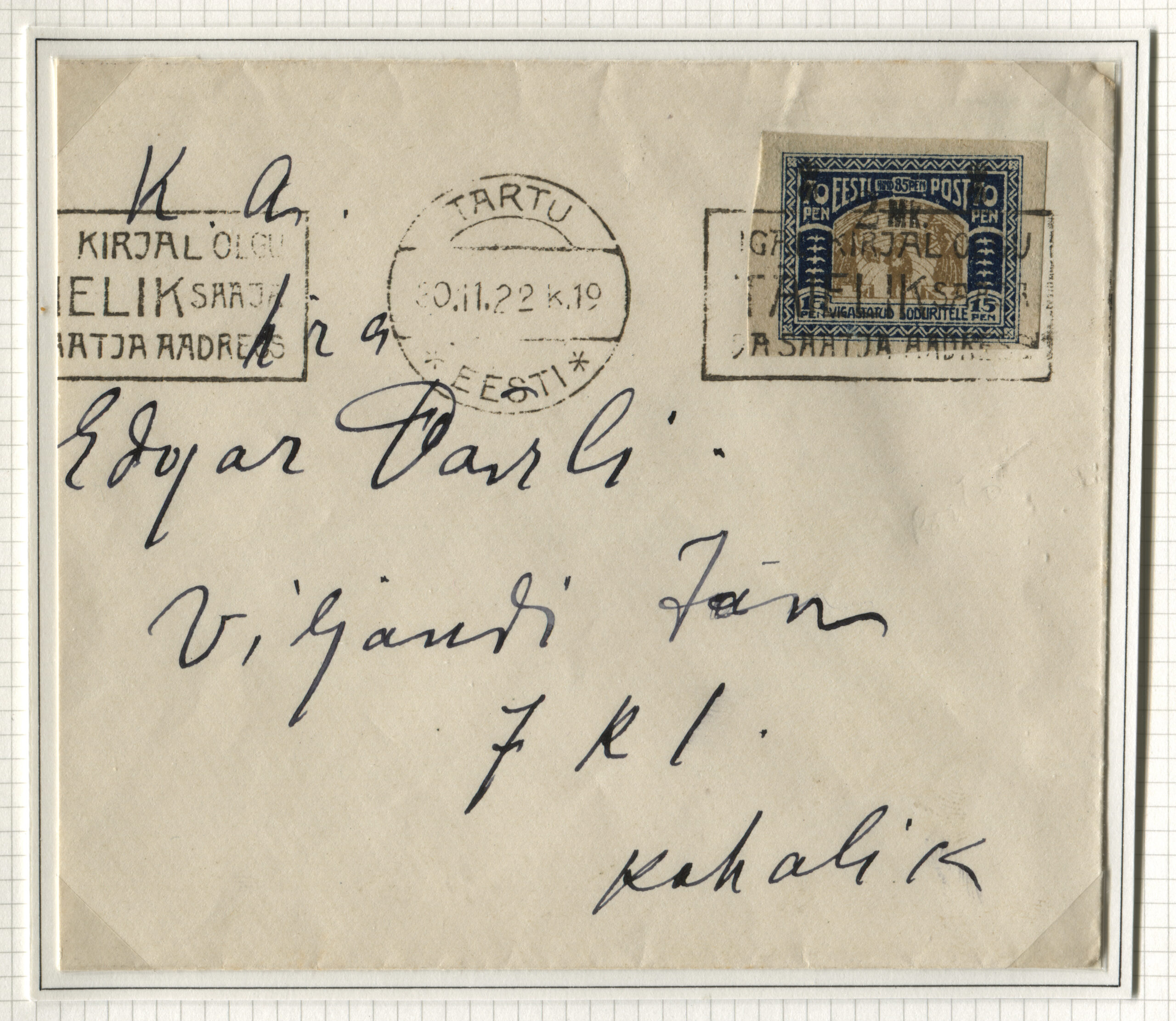 ErakoguKohalik kiri. Tartu, 30.11.1922.
