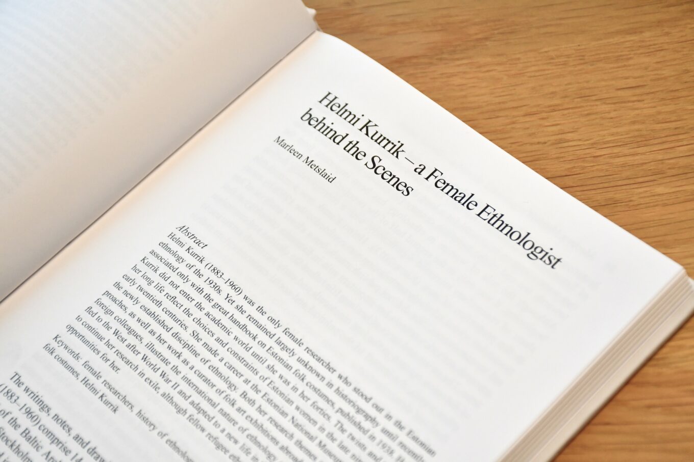 Anu Kannike, Ester Bardone (TÜ) ja Marleen Metslaid kirjutasid artikli „Eesti etnoloog Aliise Moora. Naisteadlase kohanemine ja kutsealane eneseteostus muutuvas ühiskonnas“. Marleen Metslaid kirjutas artikli „Helmi Kurrik – varjujäänud naisteadlane“.