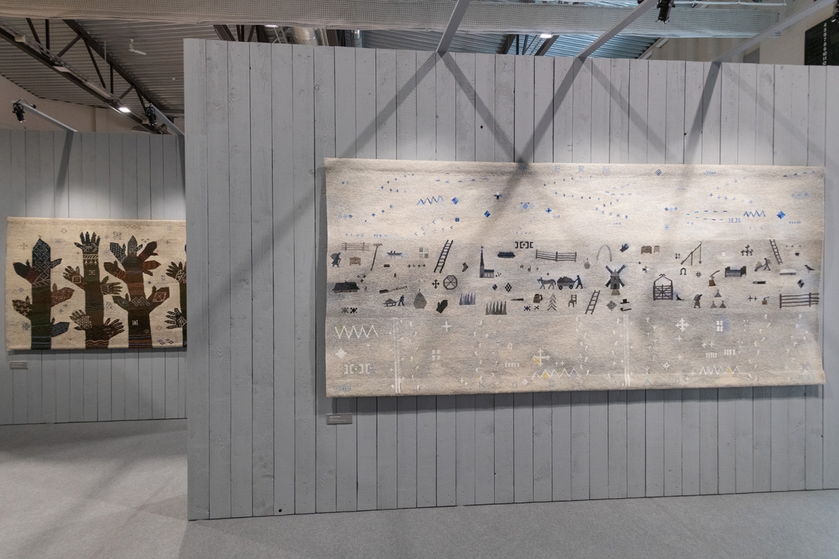 Kujundaja Ene-Liis Semper: „Anu Raua kunst ei tunne kronoloogiat. Olen kõrvuti paigutanud päris uued, juba tuntud, aga ka seni avalikkuse ette mitte jõudnud vaibad – on imeline, kuidas nad omavahel põimuvad-räägivad, nii et tekib harukordne sümbioos.“