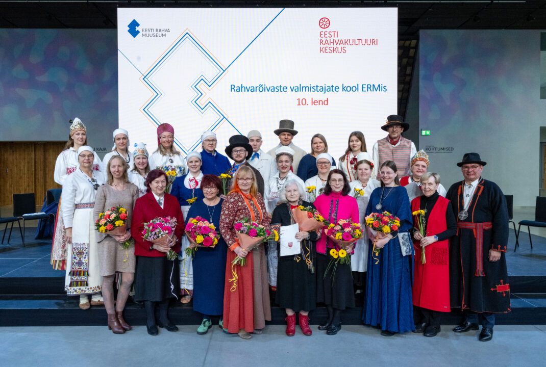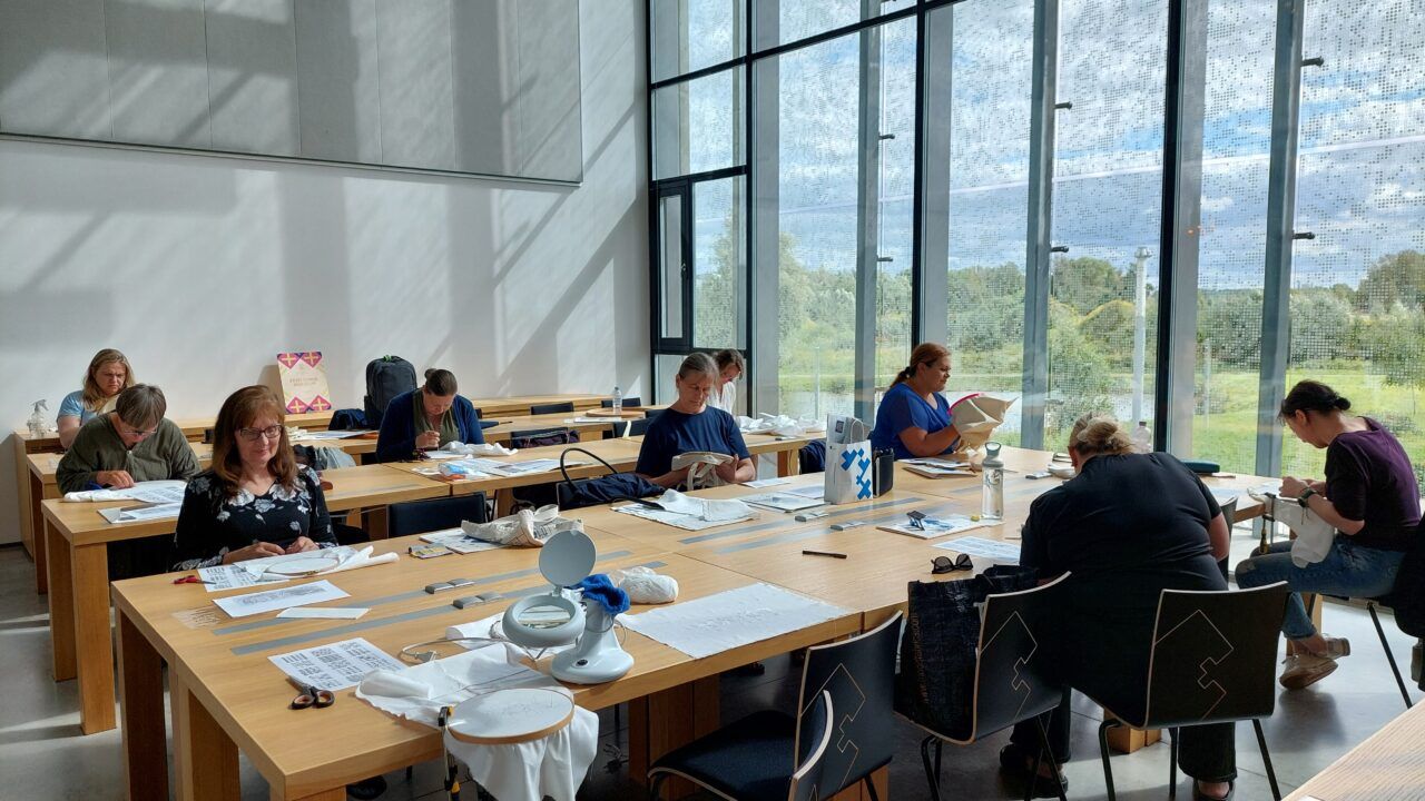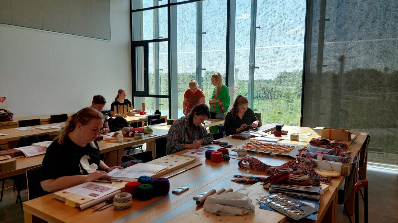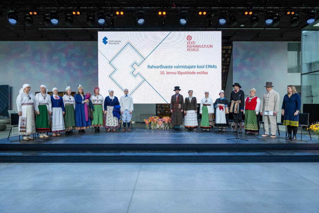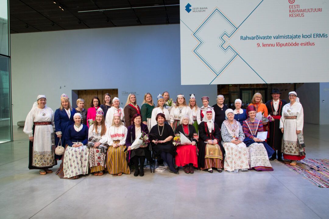 Organising the work of the Folk Costume Makers’ School is one of the tasks of the information centre. In 2023, 35 years had passed since the training of folk costume makers began. During the Singing Revolution and the restoration of the nation-state, the search for one’s roots became especially important, and more and more people wished to acquire a folk costume from their home region. For this reason, the Folk Costume Makers’ School was established in Tallinn in 1988 under the Folk Culture Centre, with the aim of training people knowledgeable about the folk costumes, history, and culture of their own region. With its rich collections of folk costumes and related archival materials, as well as its researchers, the Estonian National Museum became a cooperation partner of the Folk Culture Centre. 2005. From 2005 onward, folk costume makers began to be trained at ERM, and since 2013 the programme manager has also come from ERM. At the same time, the school was renamed the Folk Costume Makers’ School at the Estonian National Museum. 2025. In 2025, the tenth cohort completed its two-year training programme, and the eleventh cohort began its studies (programme manager Age Raudsepp; from 2025, Külli Valk).