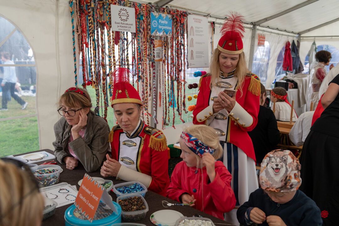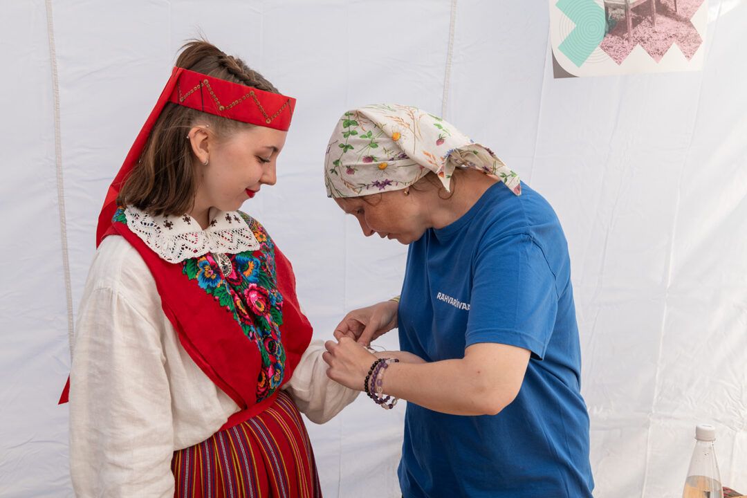 During the celebration, ERM offers dancers all-round assistance with repairing, arranging, and cleaning folk costumes. At the Song Festival Grounds, in ERM’s handicrafts tent, visitors can also learn various handicraft techniques under the guidance of master craftspeople.