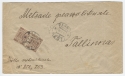 A registered letter from 8 April 1919, sent from Tallinn to Borna, Germany. The registered letter (R-letter) postmark with numbers, the date postmark “Ревель” (Revel, the old name for Tallinn) in use in the tsarist era, both the Tallinn and Finland military inspection postmark. The first Estonian-language postmark “Tallinn” has been added over the “Ревель” postmark. The letter also bears the first Estonian-language R-postmark “Tallinn”.