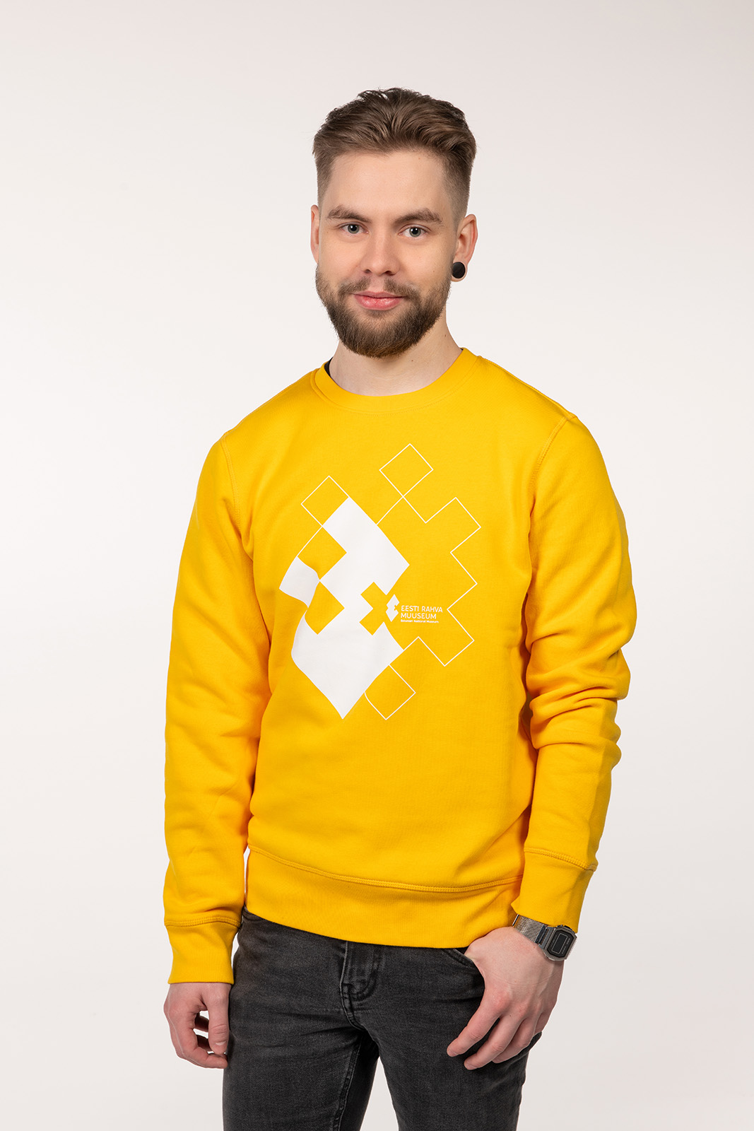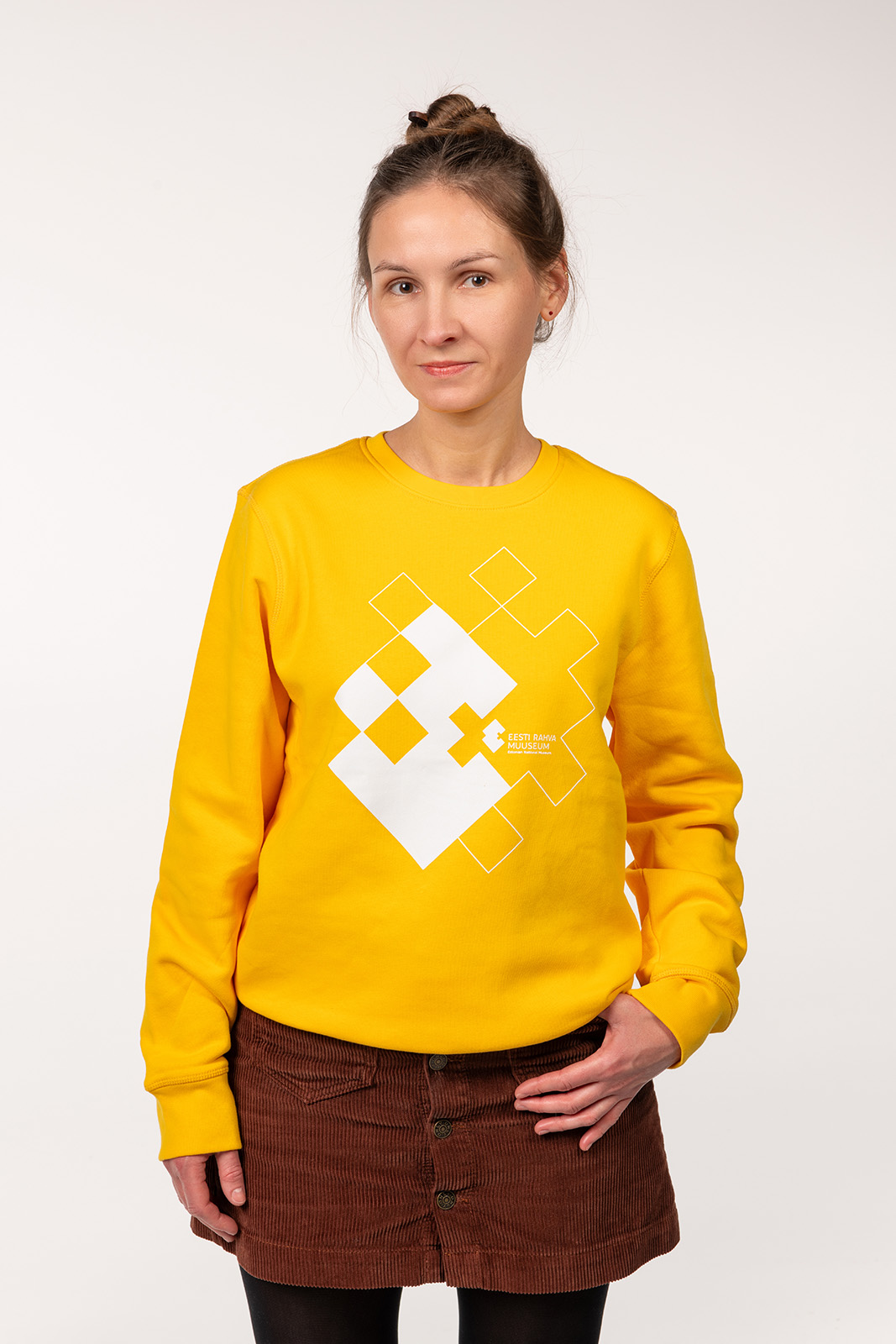 Eesti Rahva Muuseumi pusa on mõnusast pehmest ja kergelt sametisest kangast. Valmistatud 85 % orgaanilisest puuvillast ja 15 % taaskasutatud polüestrist.