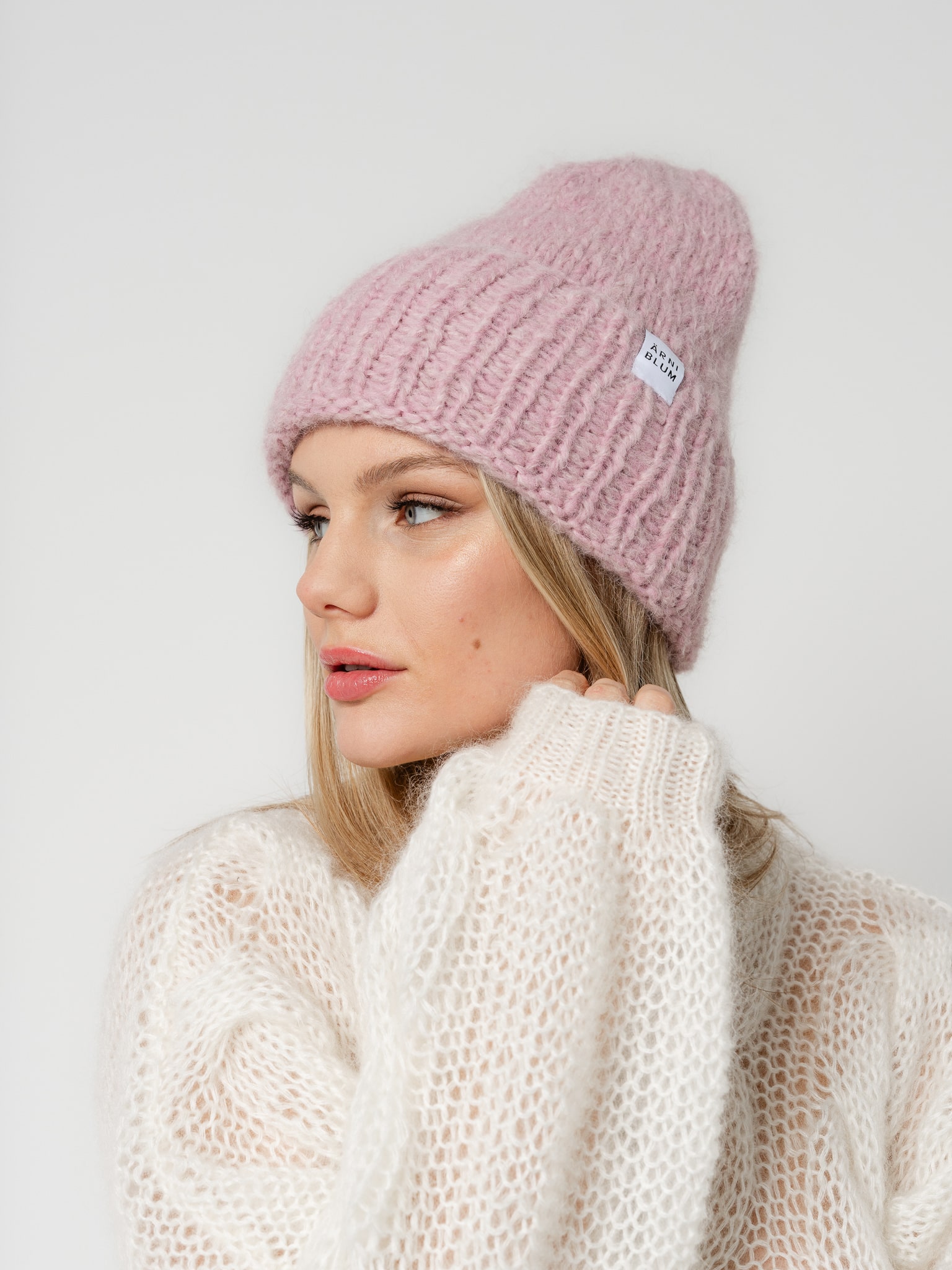 Heleroosat värvi alpaka villane müts