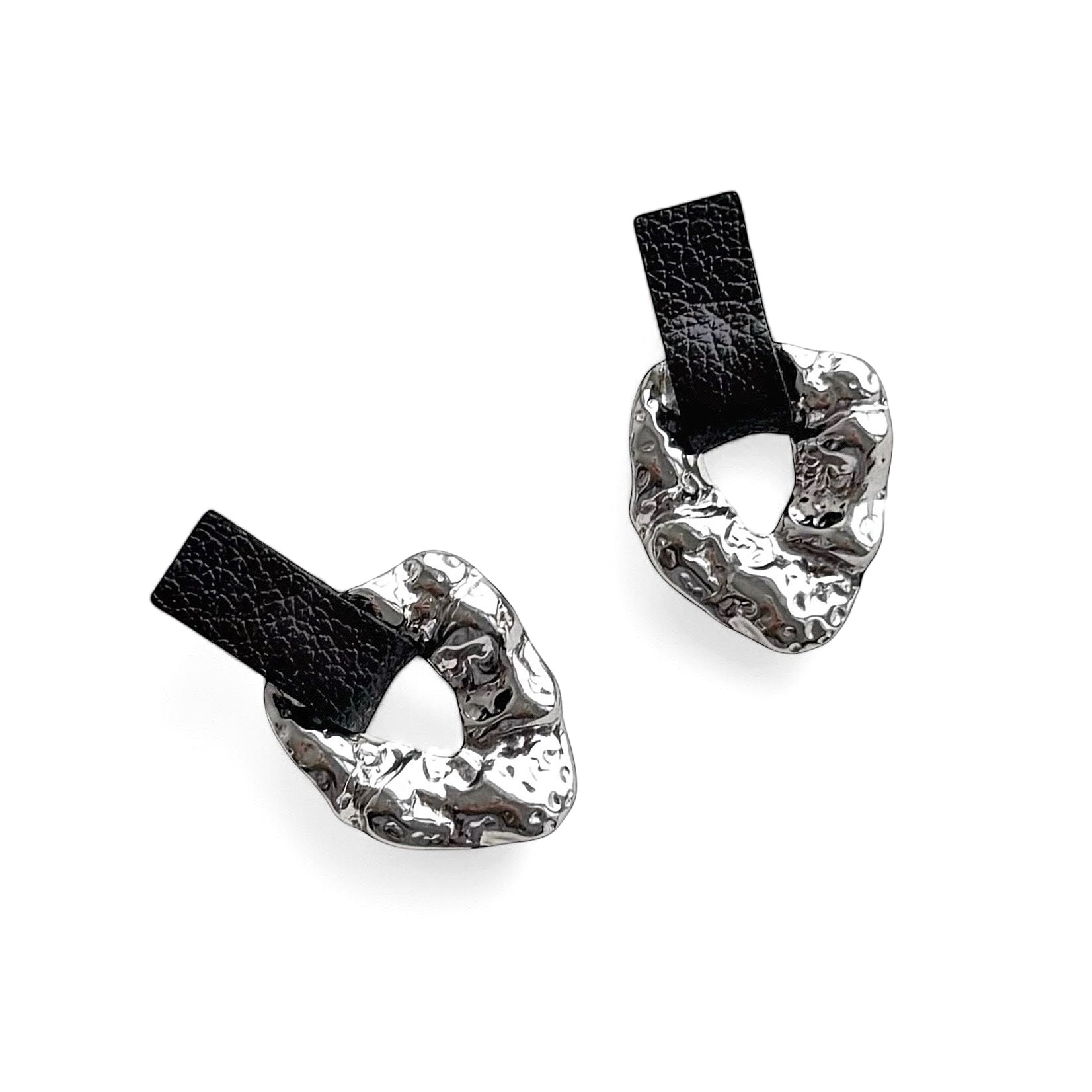 Hõbedased kõrvarõngad mustast nahast