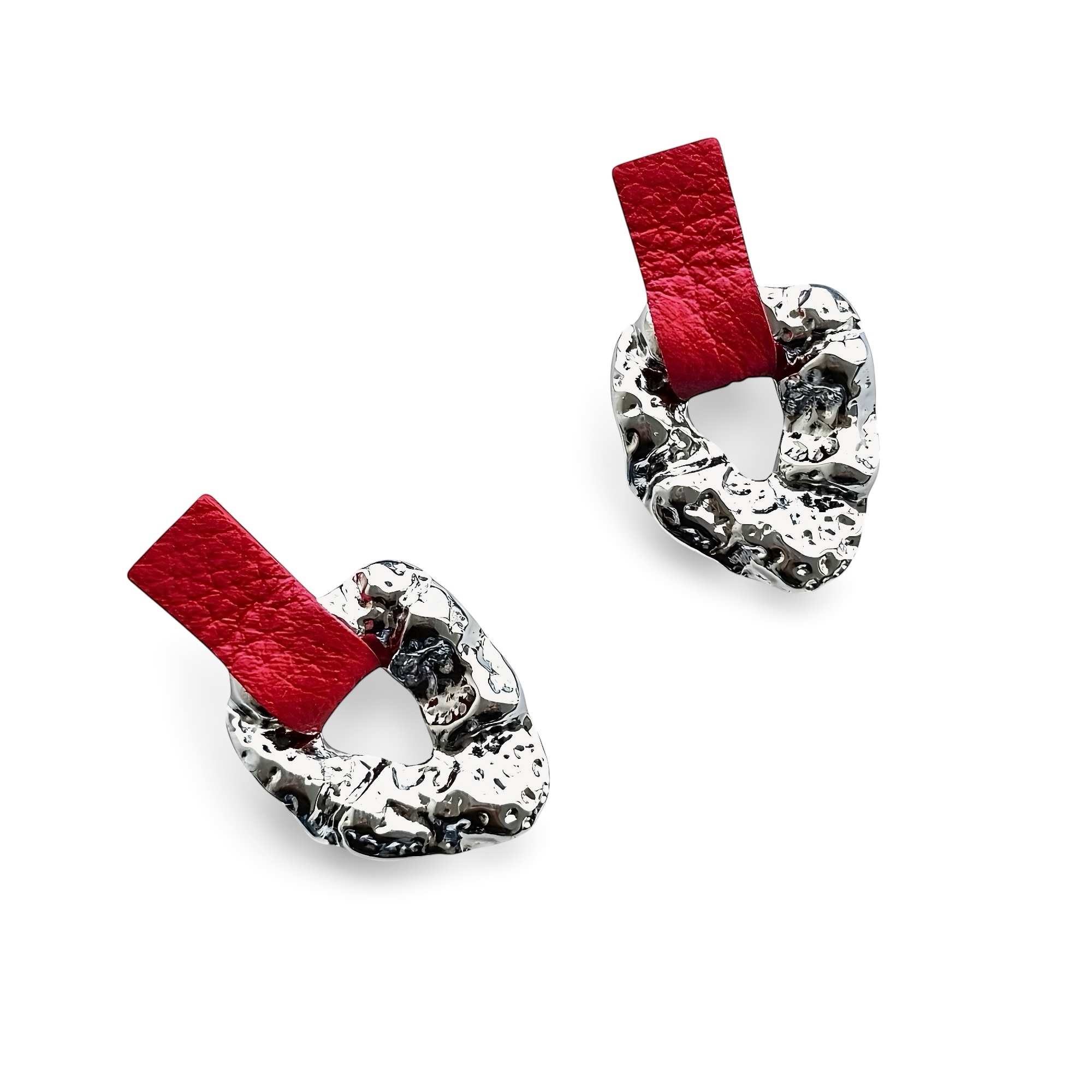 Hõbedased kõrvarõngad punasest nahast