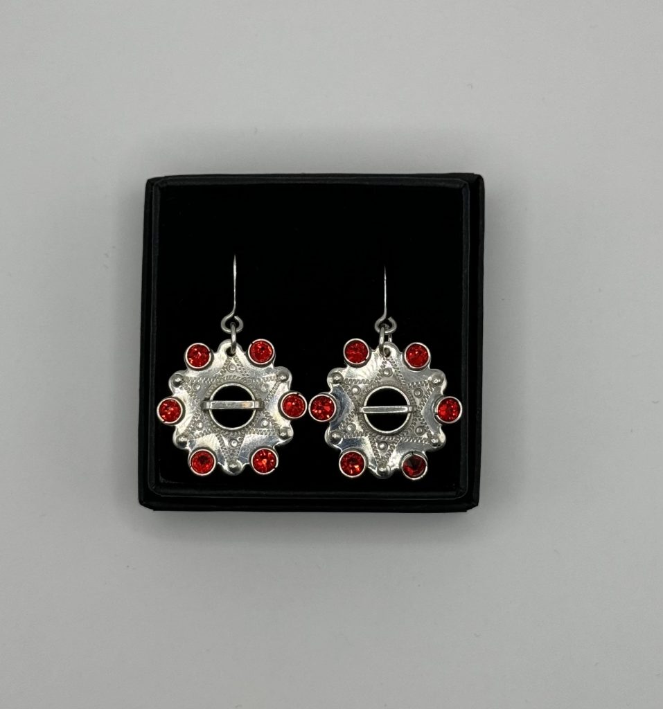 Hõbedast kõrvarõngad kuue punase kristalliga