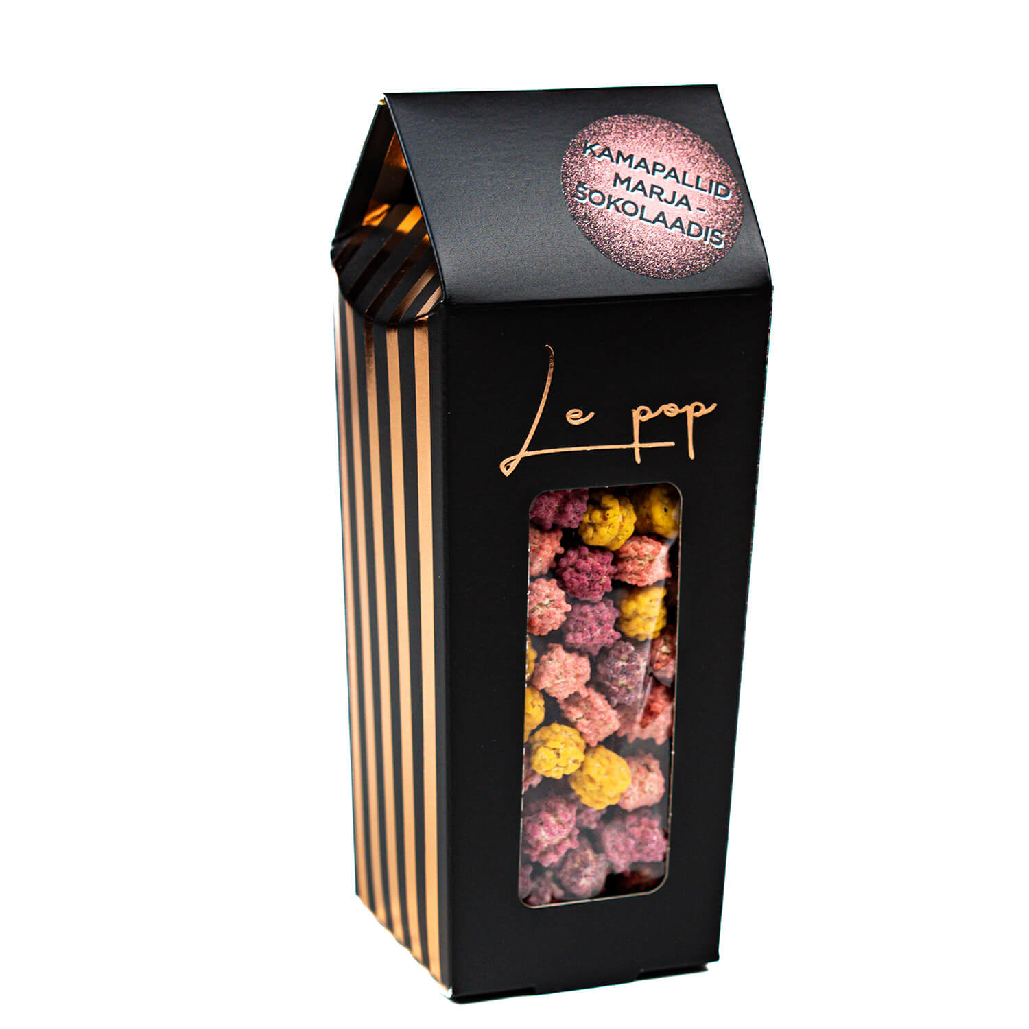 Pakk sisaldab kamapalle: maasikašokolaadis, vaarikašokolaadis, mustsõstrašokolaadis, pohlašokolaadis, astelpajušokolaadis.