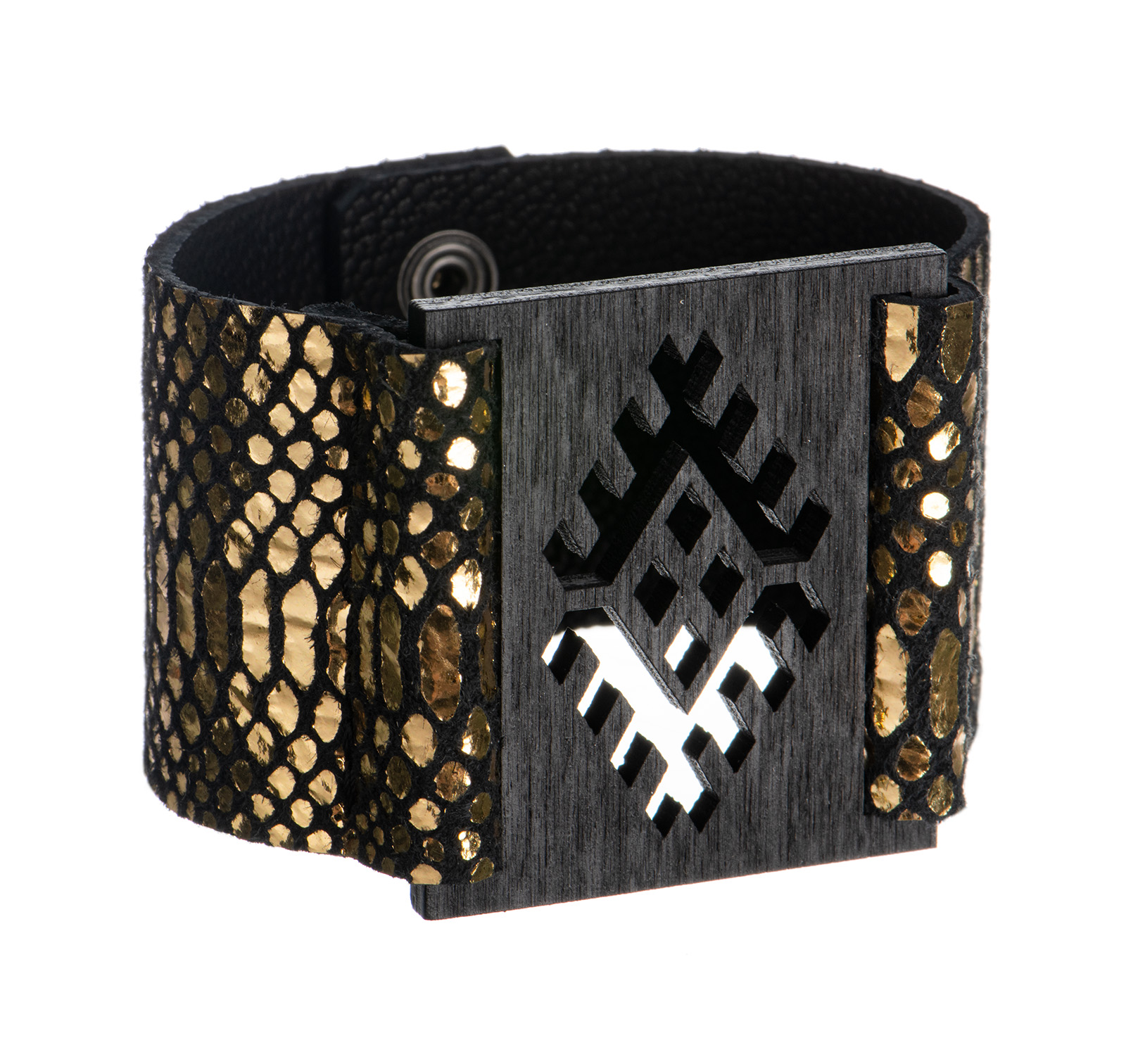 Etnohõnguliste käevõrude rihmad on valminud naturaalsest nahast. Kaunistusdetail on valmistatud kasevineerist.