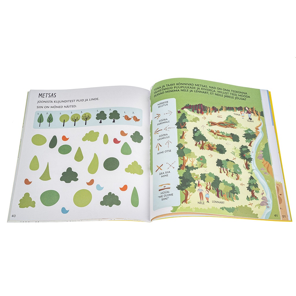 Mahukast raamatust saad teada, kuidas kasvab taim ning kuidas arenevad konnad, õpid tundma loomade lapsi ja avastad, milline leht kuulub millisele puule. Ka mänge on ohtralt: osavus-, otsimis- ja tähelepanumängud, erinevuste otsimine, loendamisülesanded.