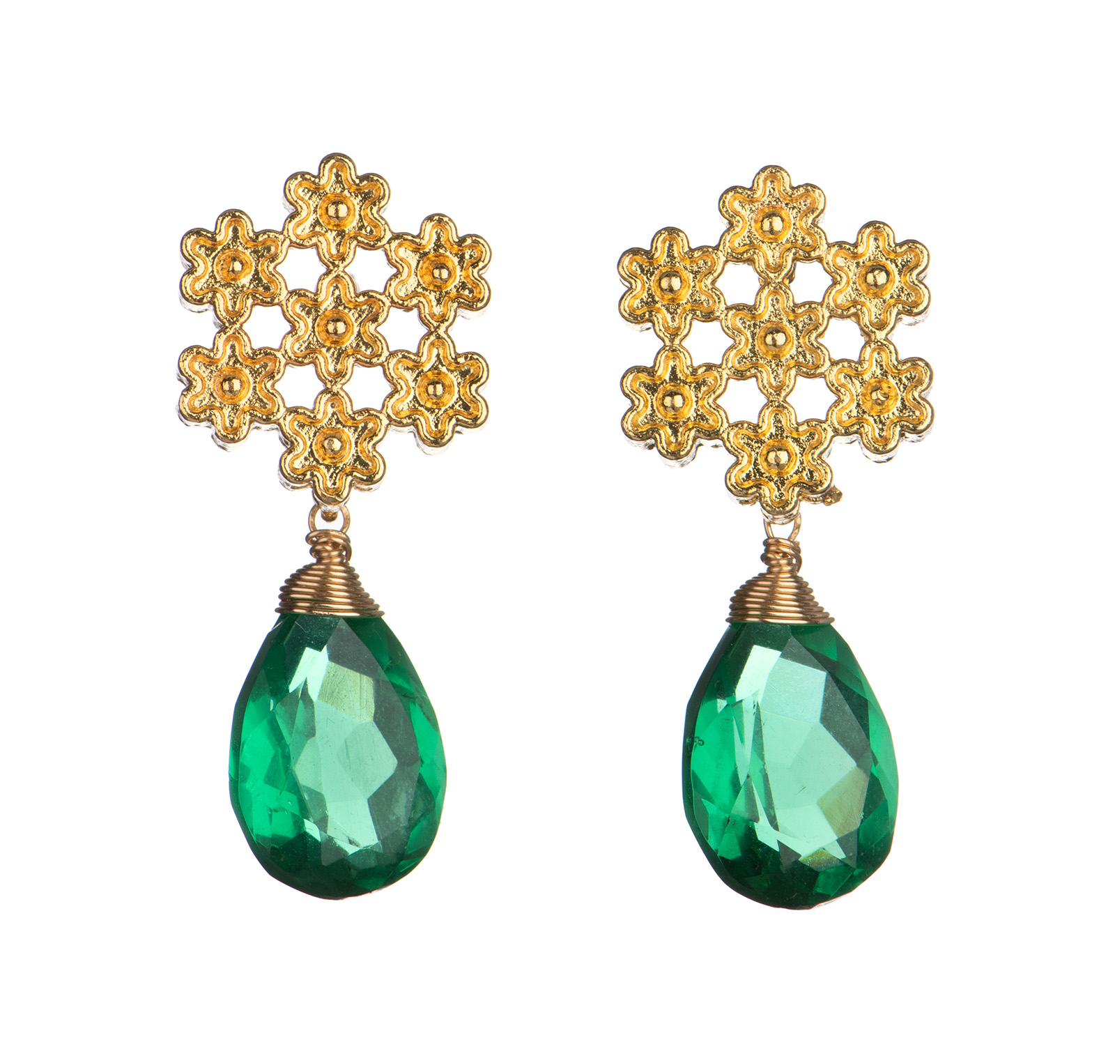 Kõrvarõngaid kaunistavad 2 cm pikkused rohelised kvartsist kivikesed.