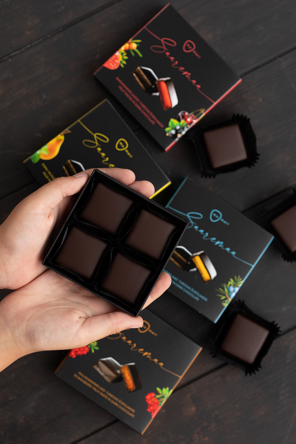 MoMari marmelaadid valmivad käsitööna puhtast marjapüreest ja on kaetud tumeda Belgia šokolaadiga.