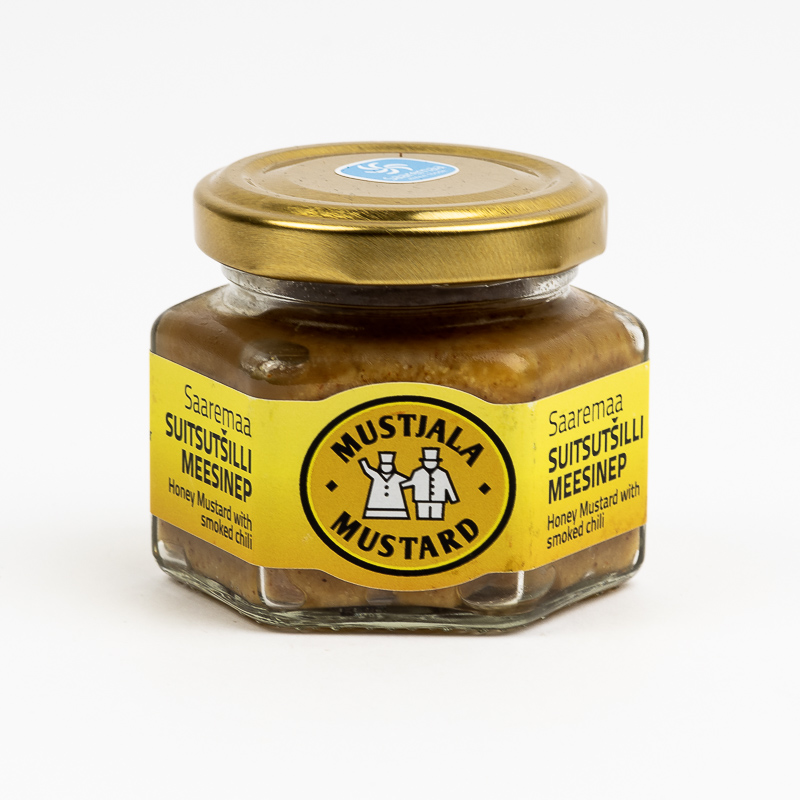 Mustjala Mustardi suitsutšilli meesinepi klaaspurgil on kujutatud lehvitavat Mustjala meest ja naist. Just seal, Mustjalas, Saaremaal seda sinepit ka valmistatakse, käsitsi ja peamiselt värskest toorainest ümbruskonna taludest.
