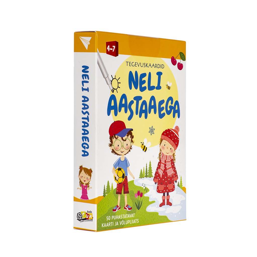 Mängida saab igal aastaajal. Eks ole? Elina ja Stefan leiavad lõbusat tegevust iga ilmaga. Nende kaartide abil õpivad lapsed paremini tundma nelja aastaaega, lahendama loogikaülesandeid, arendama tähelepanu ja mõtlemisvõimet.