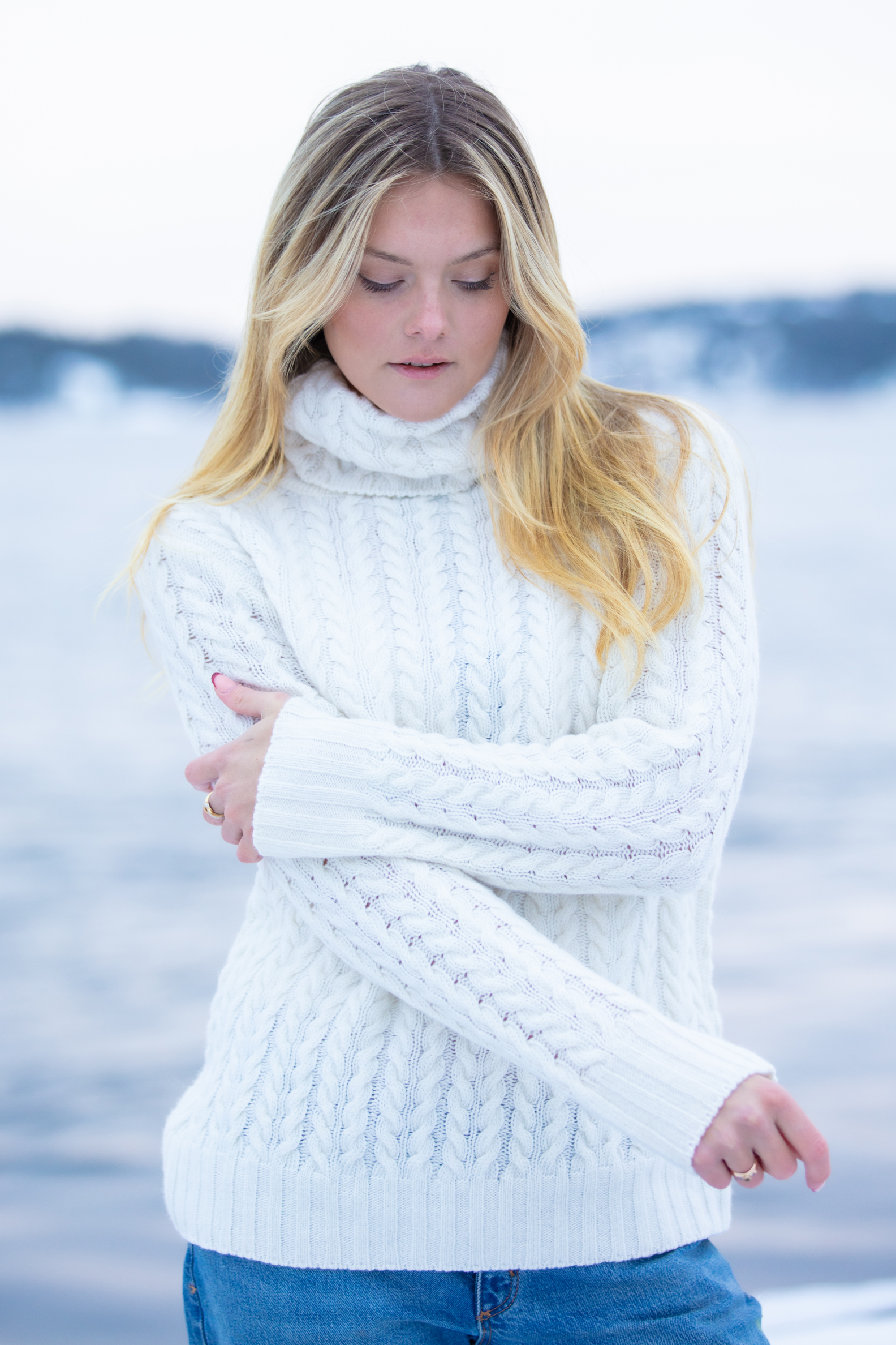 Avara kõrge kaelusega keskmise paksusega kerge, soe ja pehme lambavillane kampsun. Kampsun on üleni palmikute koemustriga.
