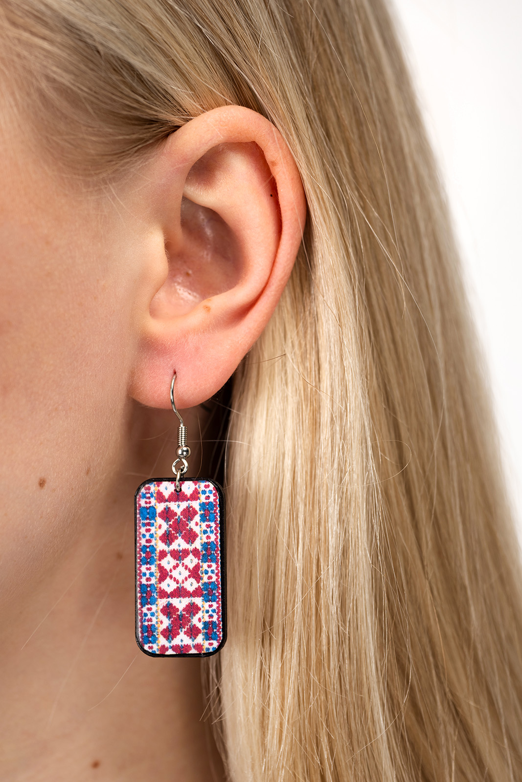 Kõrvarõngastel on tükike Viljandi kirivöö mustrist.