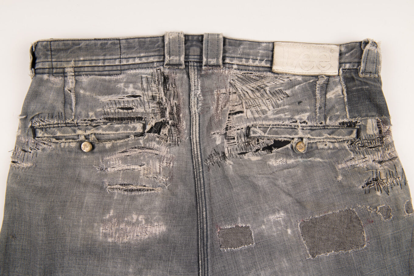 Fotol paigatud püksipaar ERMi Heimtali muuseumi püksiparandamise konkursilt.