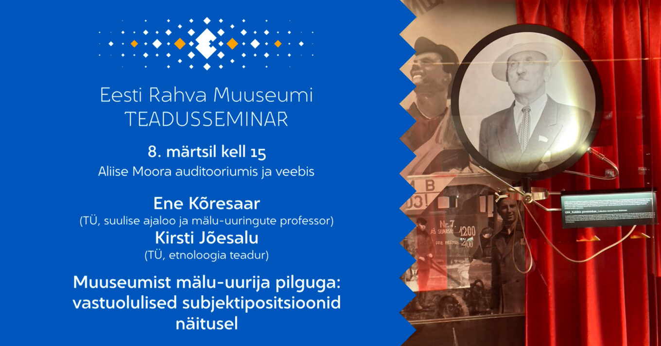 Teisipäeval, 8. märtsil kell 15 kutsume kuulama ja kaasa arutama ERMi teadusseminaril, mille teemaks on „Muuseumist mälu-uurija pilguga: vastuolulised subjektipositsioonid näitusel“. Ettekande peavad Ene Kõresaar (TÜ suulise ajaloo ja mälu-uuringute professor) ja Kirsti Jõesalu (TÜ etnoloogia teadur).