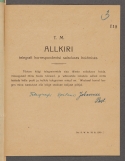 Andmed. Tööpuuduse vastu võitluse otstarbel teenistusvahekordade korraldamise seaduse (RT, nr 30, 1932) alla kuuluvate isikute kohta. Punkt 10: Kumb abielulistest vallandamise puhul omavahelise kokkuleppe järgi soovib teenistusest lahkuda (sellele küsimusele vastavad mõlemad abielulised: üks – „mina lahkun“ ja teine „lahkub minu abikaasa“. Antud juhul ei soovinud kumbki abikaasadest teenistusest lahkuda.