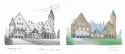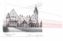 Kui sobiv foto ja kadreering leitud, suurendasin need arvutis vajalikule suurusele ja printisin välja ning selle põhjal märkisin läbi valguslaua proportsioonid joonistuspaberile. Siis joonistasin pildi fotot vaadates pliiatsiga täpseks ja tegin tušijoonistuse, kasutades rapidograafi. Fotot ei joonistanud ma tuimalt maha, kontrollisin perspektiivi ja seda, et ei oleks vertikaalset koondumist (seinad olgu alati korralikult püstised, mitte ülesse koonduvad nagu fotol). Tušijoonistuse pealt joonistasin läbi valguslaua kontuurid pliiatsiga teisele joonistuspaberile, millele joonistasin omakorda värvi, kasutades alguses tavalisi värvipliiatseid, lõpupoole pastellpliiatseid.
