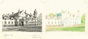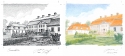 Kui sobiv foto ja kadreering leitud, suurendasin need arvutis vajalikule suurusele ja printisin välja ning selle põhjal märkisin läbi valguslaua proportsioonid joonistuspaberile. Siis joonistasin pildi fotot vaadates pliiatsiga täpseks ja tegin tušijoonistuse, kasutades rapidograafi. Fotot ei joonistanud ma tuimalt maha, kontrollisin perspektiivi ja seda, et ei oleks vertikaalset koondumist (seinad olgu alati korralikult püstised, mitte ülesse koonduvad nagu fotol). Tušijoonistuse pealt joonistasin läbi valguslaua kontuurid pliiatsiga teisele joonistuspaberile, millele joonistasin omakorda värvi, kasutades alguses tavalisi värvipliiatseid, lõpupoole pastellpliiatseid.