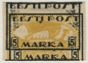 1.09.1919 – 5 marka, must-oranžikaskollane, lõigatud, valge paber.
