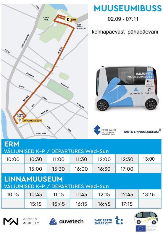 Isejuhtiva Auvetechi 8-kohalise bussi, mis sõidab kolmapäevast pühapäevani marsruudil ERM-Tartu Linnamuuseum-ERM, käigusolekut pikendati 7. novembrini 2021.