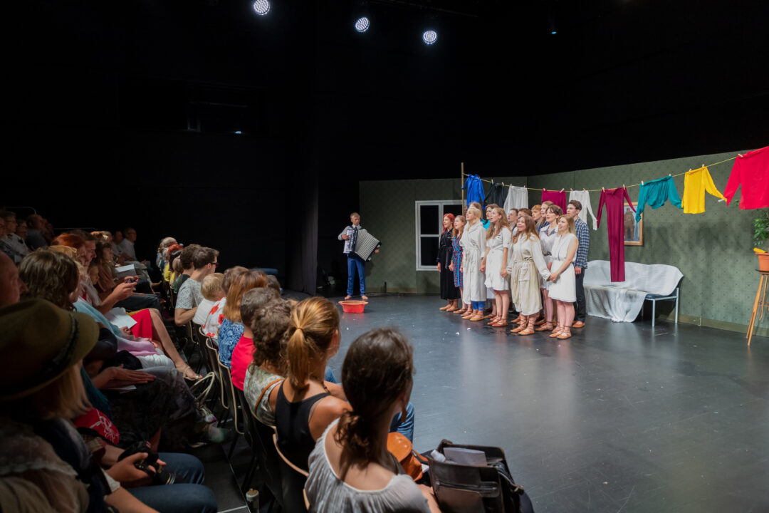 ERMi Maja B‑osas asuv teatrisaal on mitmekülgne black‑box ruum, mis sobib eriti hästi teatrietendusteks, kontsertideks ja eriformaadis muusikaõhtuteks.