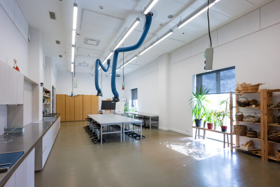 Avar ja valgusküllane töötuba on loodud spetsiaalselt praktilisteks tegevusteks – siin on suurepärased tingimused erinevate käsitöövõtete õppimiseks ning grupitöödeks. Ruum pakub paindlikke võimalusi nii õppetööks, loominguliseks tegevuseks kui ka töötubade läbiviimiseks.