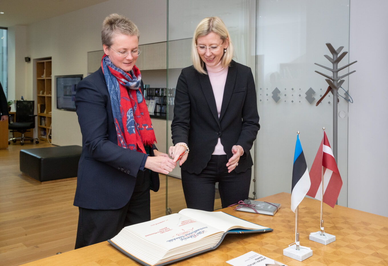 Täna külastas Eesti Rahva Muuseumi Läti Vabariigi uus suursaadik Eestis Kristīne Našeniece. Tegemist oli tutvumisvisiidiga, mille käigus tutvustati suursaadikule muuseumi ja näituseid ning arutleti võimaliku koostöö teemadel. Kohtumine oli soe ja viljakas ning Läti suursaatkonna visiit jäädvustati meie külalisteraamatusse. ERMi poolt kinkis direktor Kertu Saks suursaadikule raamatu ERMi kogudesse talletatud Eesti rahvuslikest hõbeehetest.