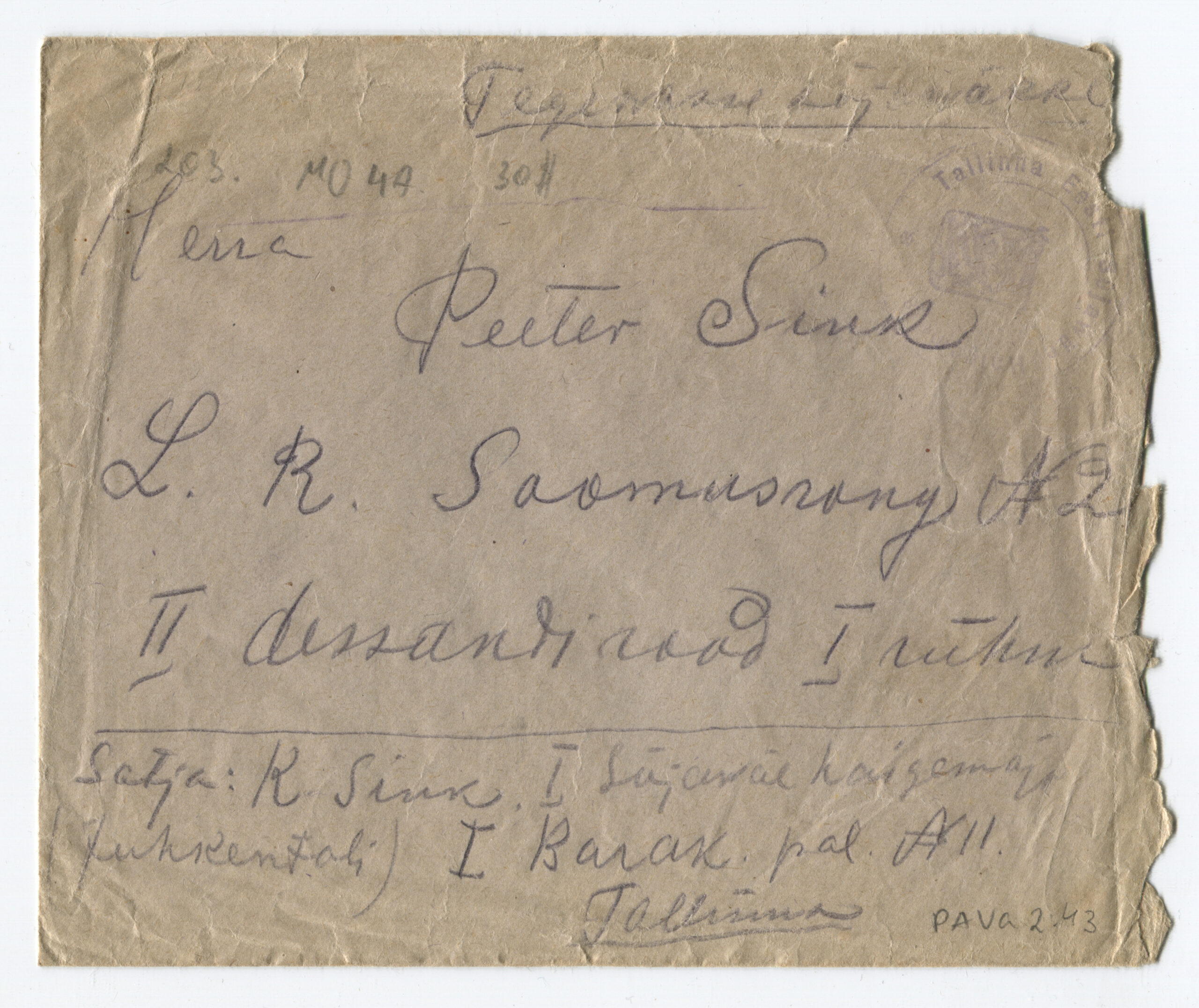Kiri on saadetud Tunne Kelami isale. „Ta oli Tallinna Kunsttööstuskooli vabatahtlike hulgas, soomusrongil oma sõbra ja toakaaslase Eduard Wiiraltiga, suhteliselt lühikest aega. Mäletan tema juttu mõnest episoodist, mis seotud just rongil olemisega. Kirja saatja peaks olema tema vend, minu onu Kristjan Sink,“ meenutab Tunne Kelam.Kopli Sõjawäe Haigemaja Tallinnas / Kirjade tarwis