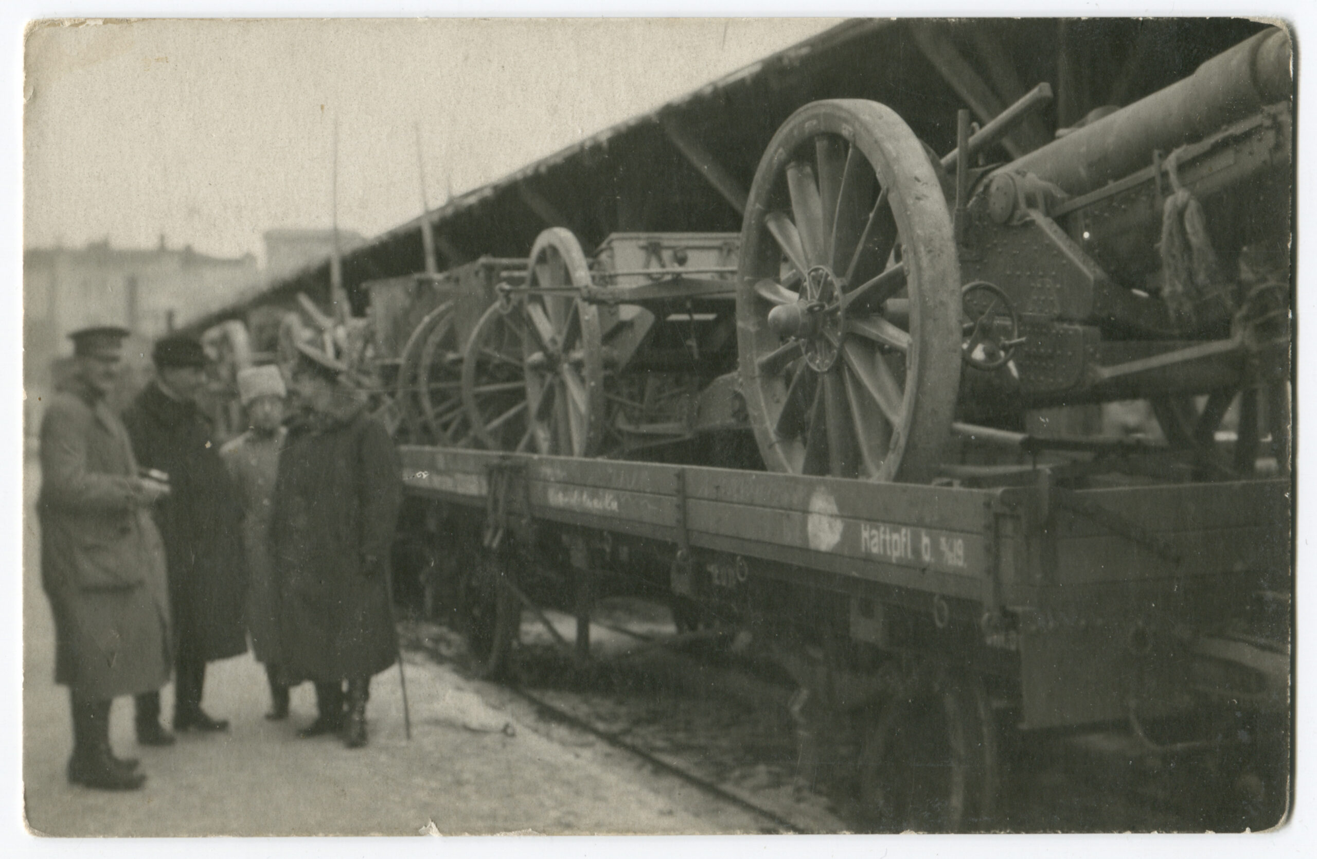 Foto: I. & P. Parikas Tallinnas. Foto on tehtud 1919. aasta märtsi algul Tallinna raudteejaamas. Inglismaalt saabus sõjatehnika. „Üsna puudulik, kirju ja vananenud oli 1919 aasta keskpaigas meie suurtükiväe relvastus. Täiesti uueks ja korralikuks võib lugeda vaid Inglismaalt saadud kaksteistkümmend 18-naelast kahurit ja kuut 6-tollist haubitsat.“Kopli Sõjawäe Haigemaja Tallinnas / Kirjade tarwis