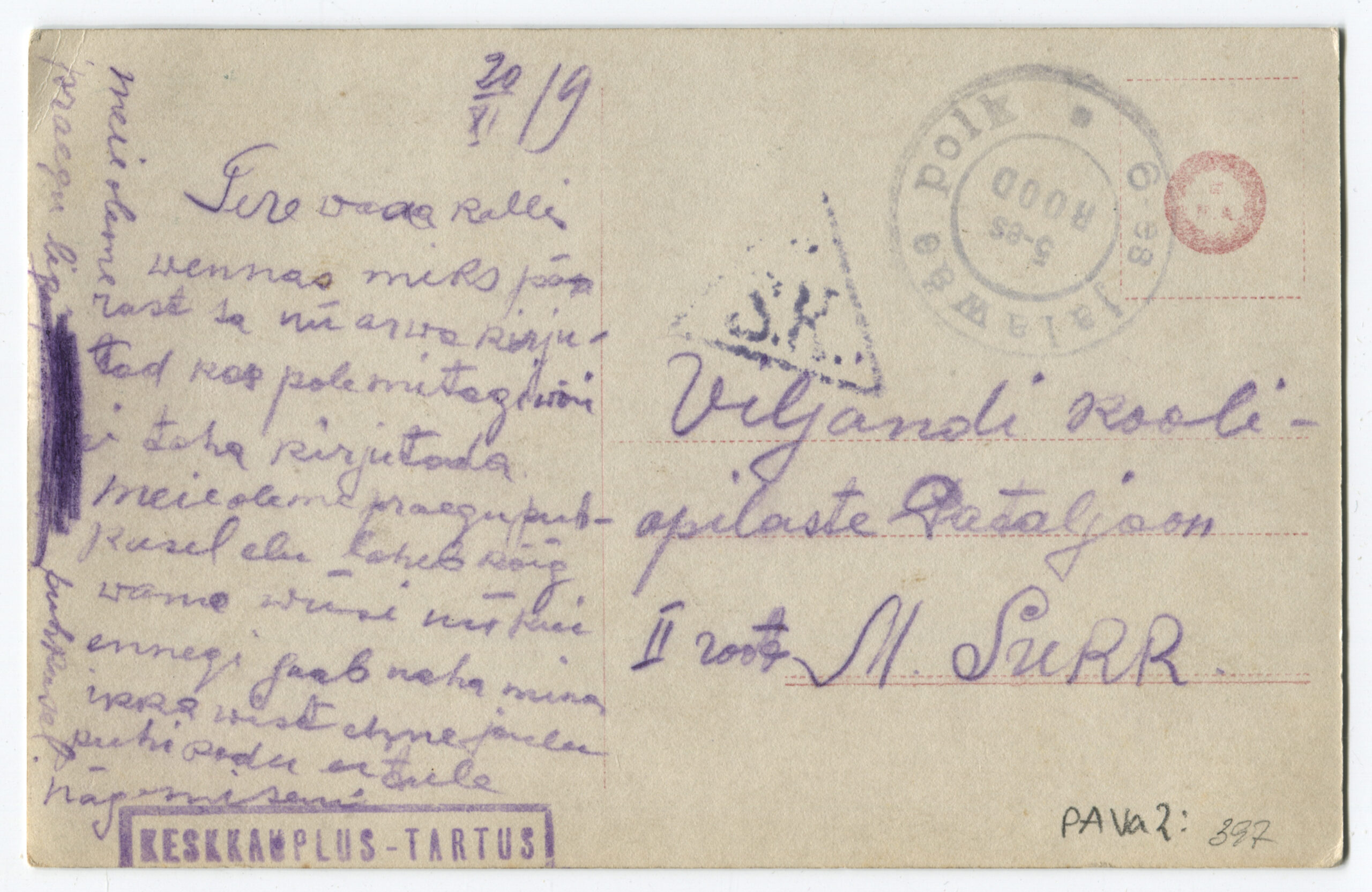 7. jalaväe polgu kortermeistri ladu asus Võrus Tartu tn 15.8 JALAWÄE POLK / Kirjadele