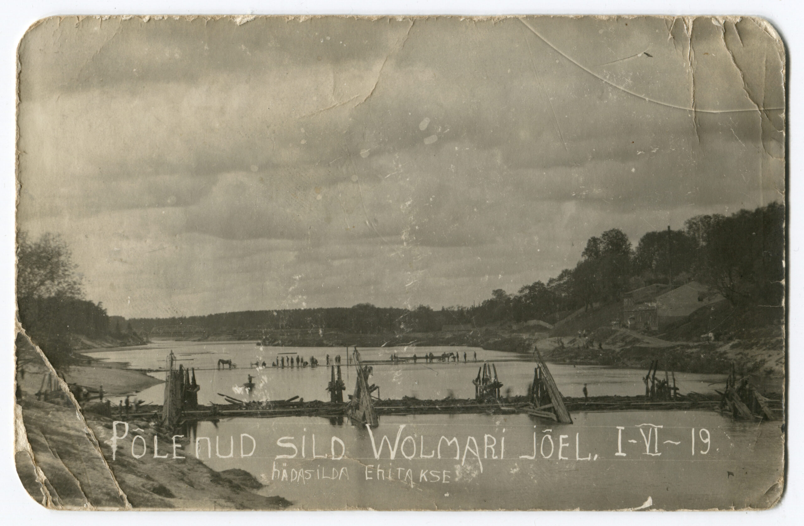 Põlenud sild Wolmari (Valmiera) jõel 1.06.1919. Hädasilda ehitatakse.6-da Rahwawäe polgu / 9 ROOD