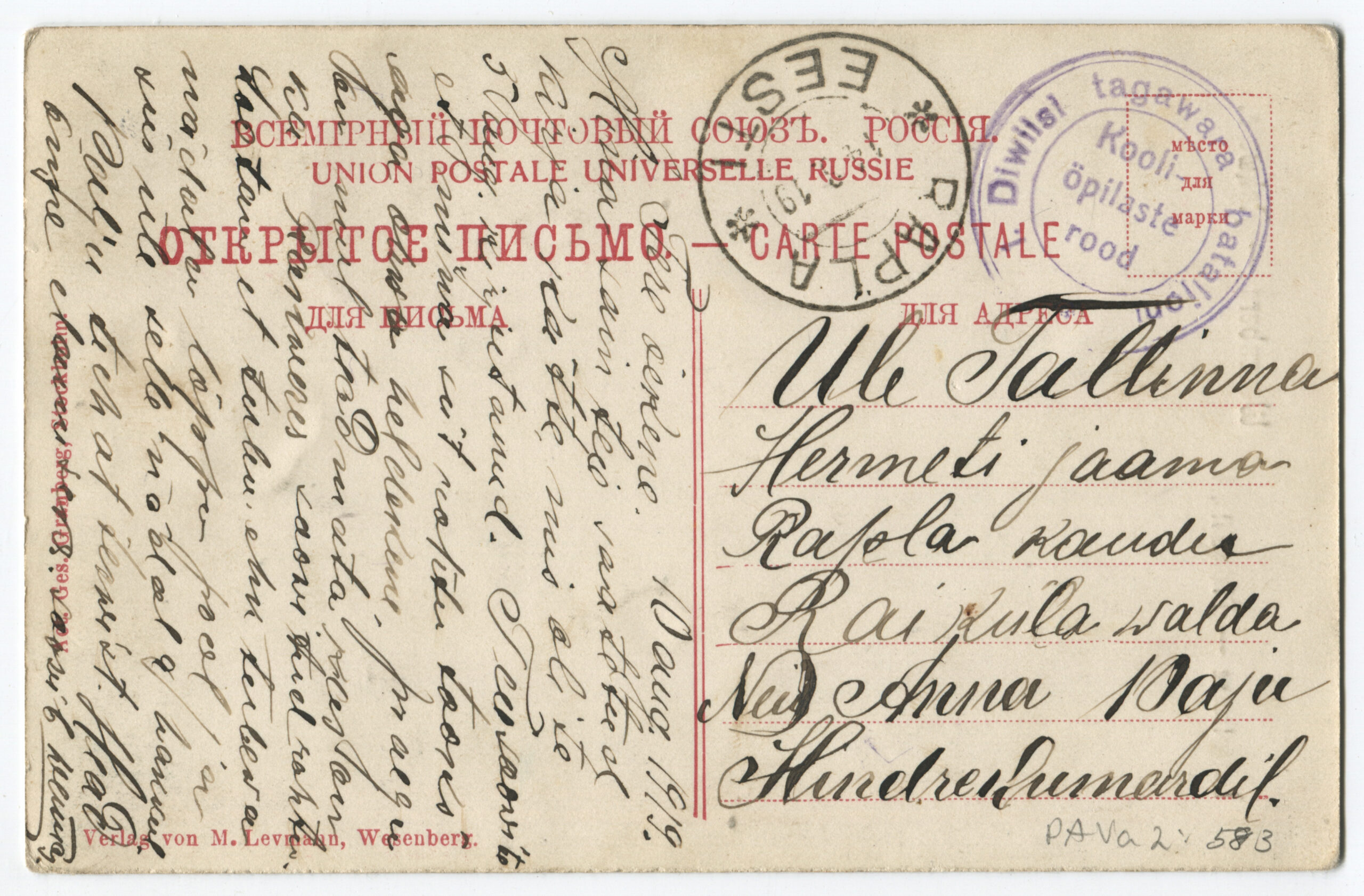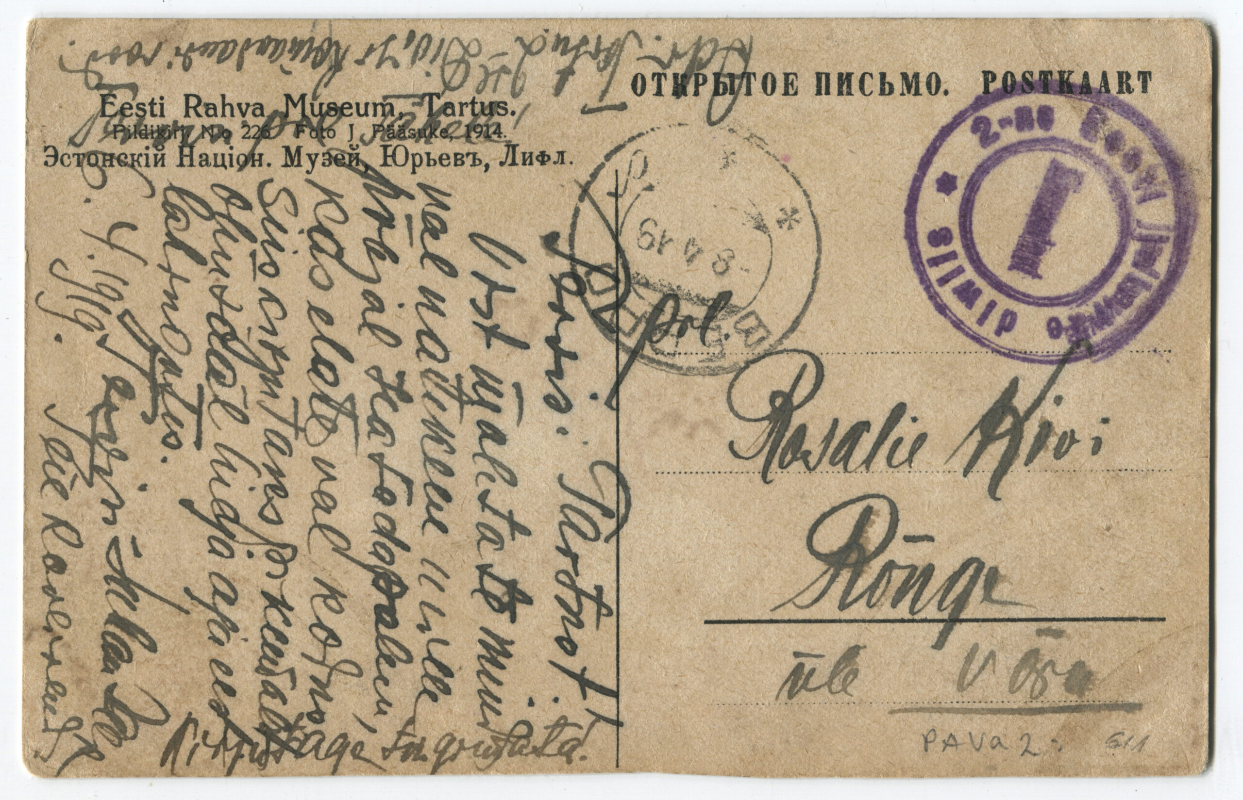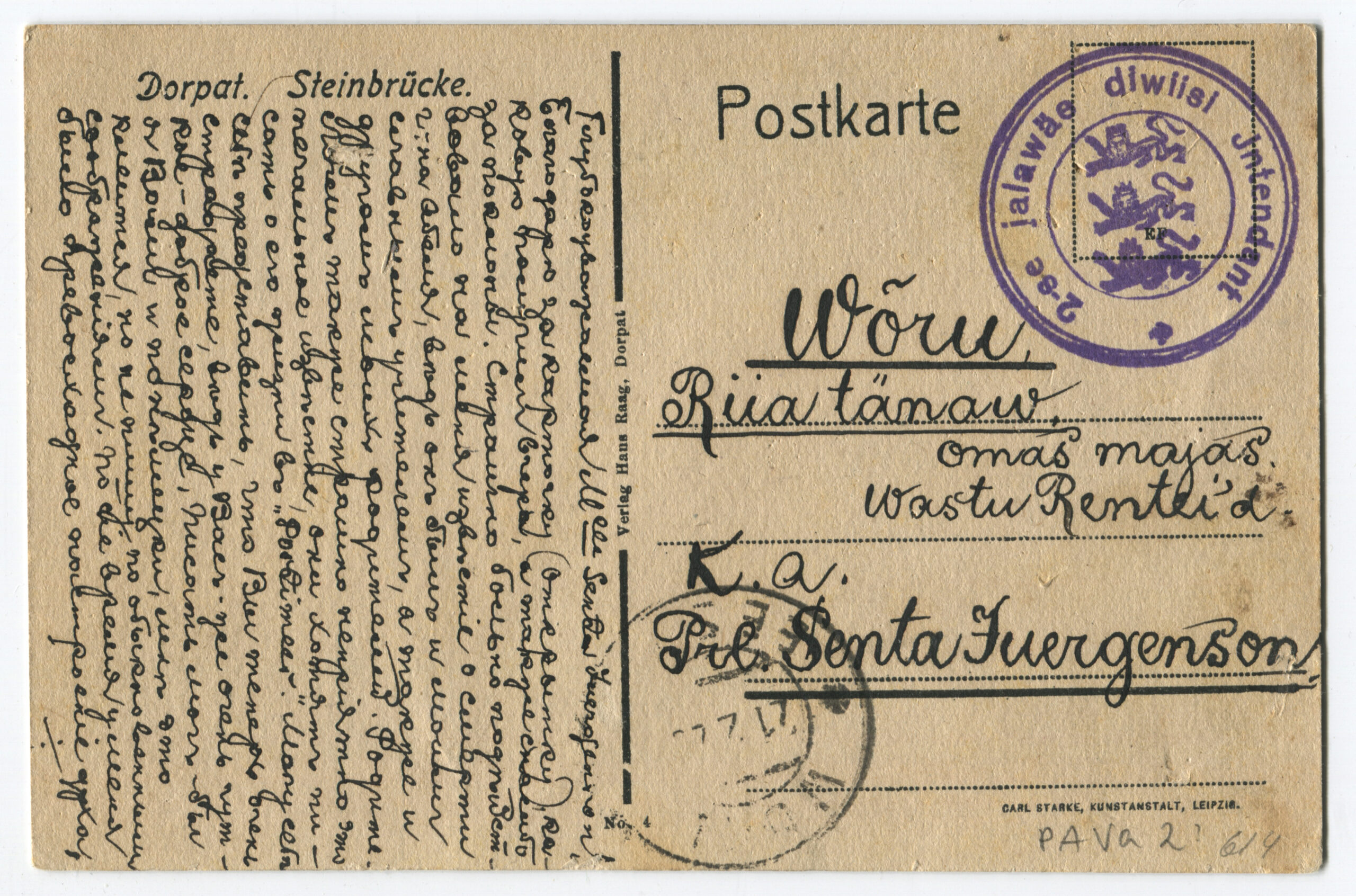Kiri on saadetud Rakverest Viljandisse 24.06.1919.