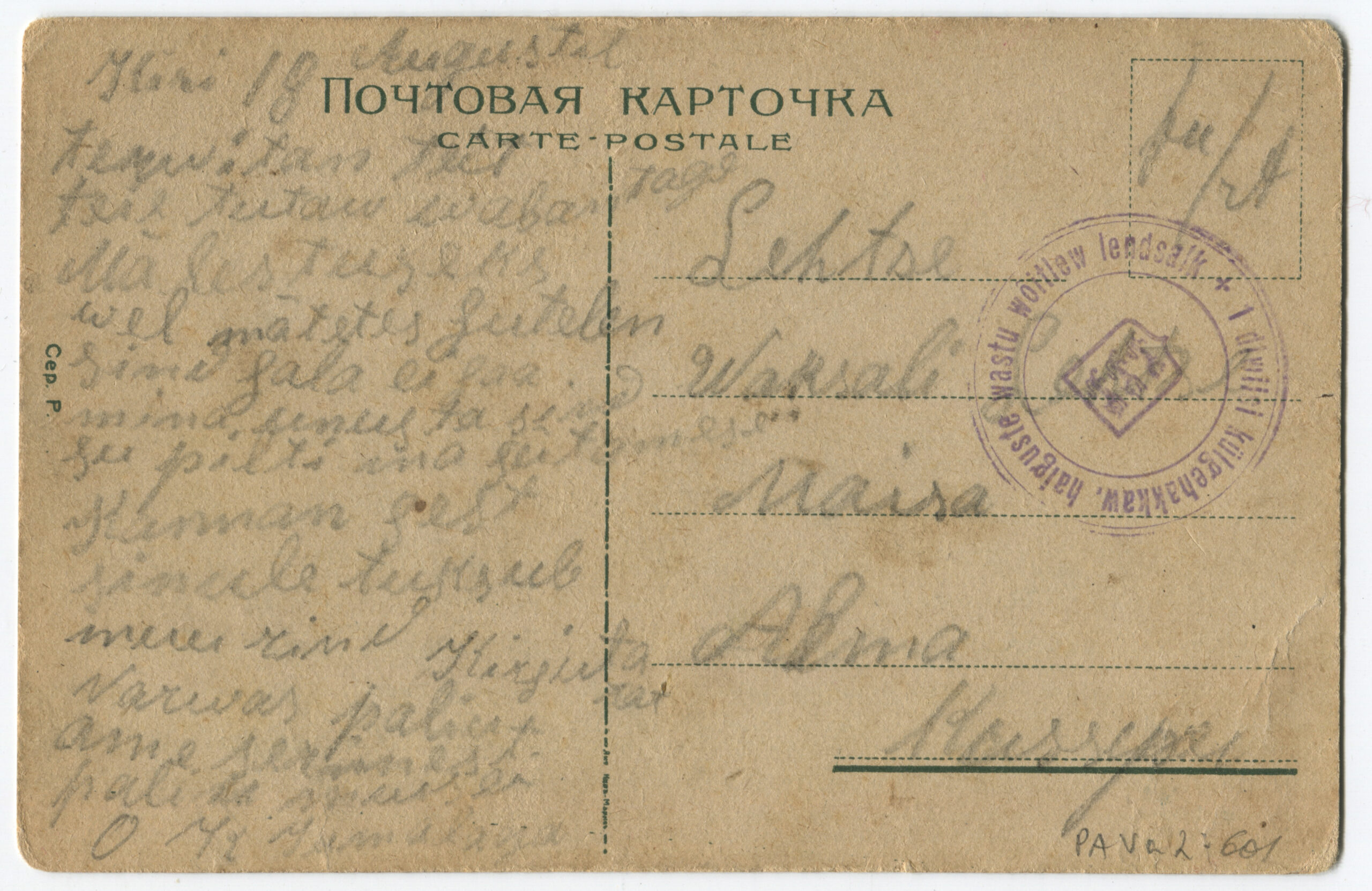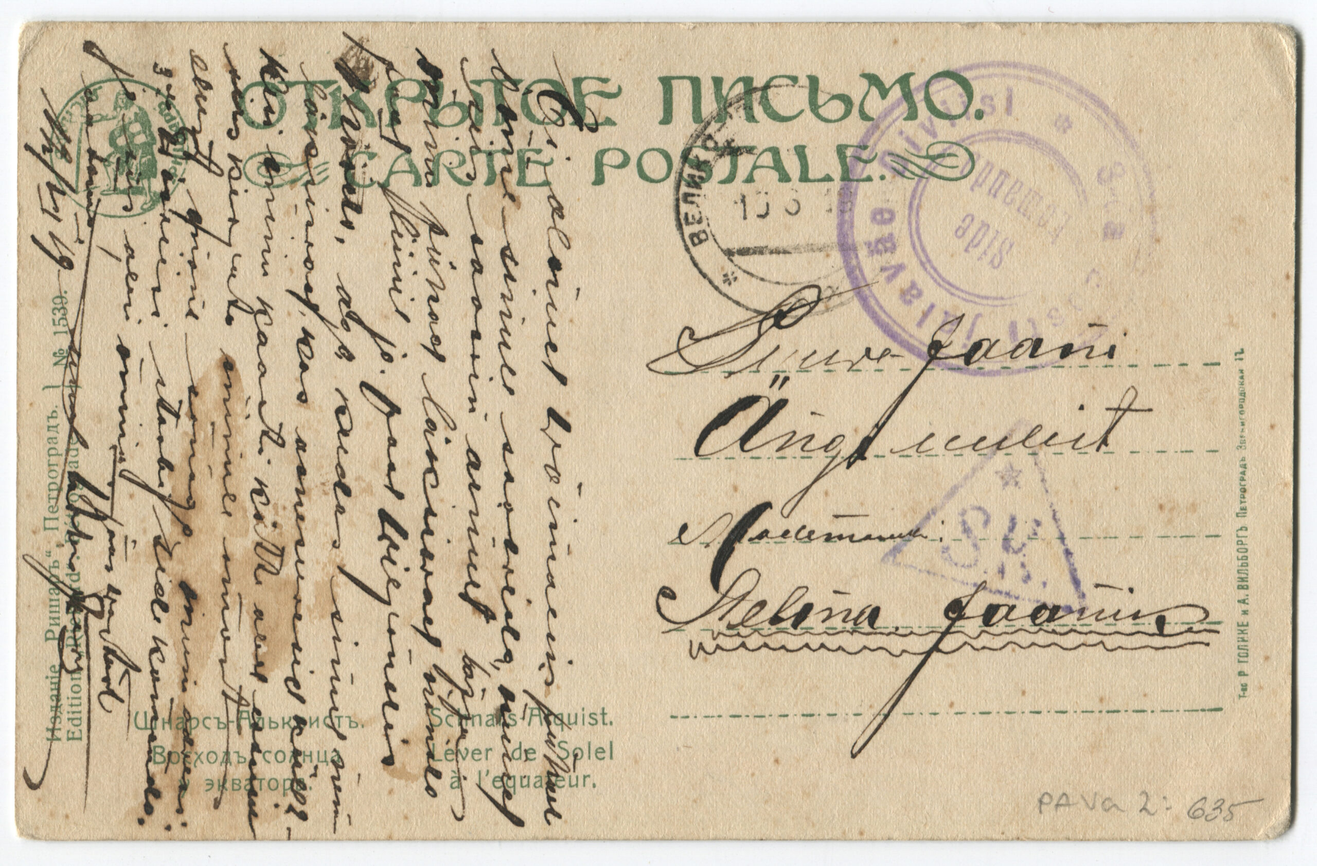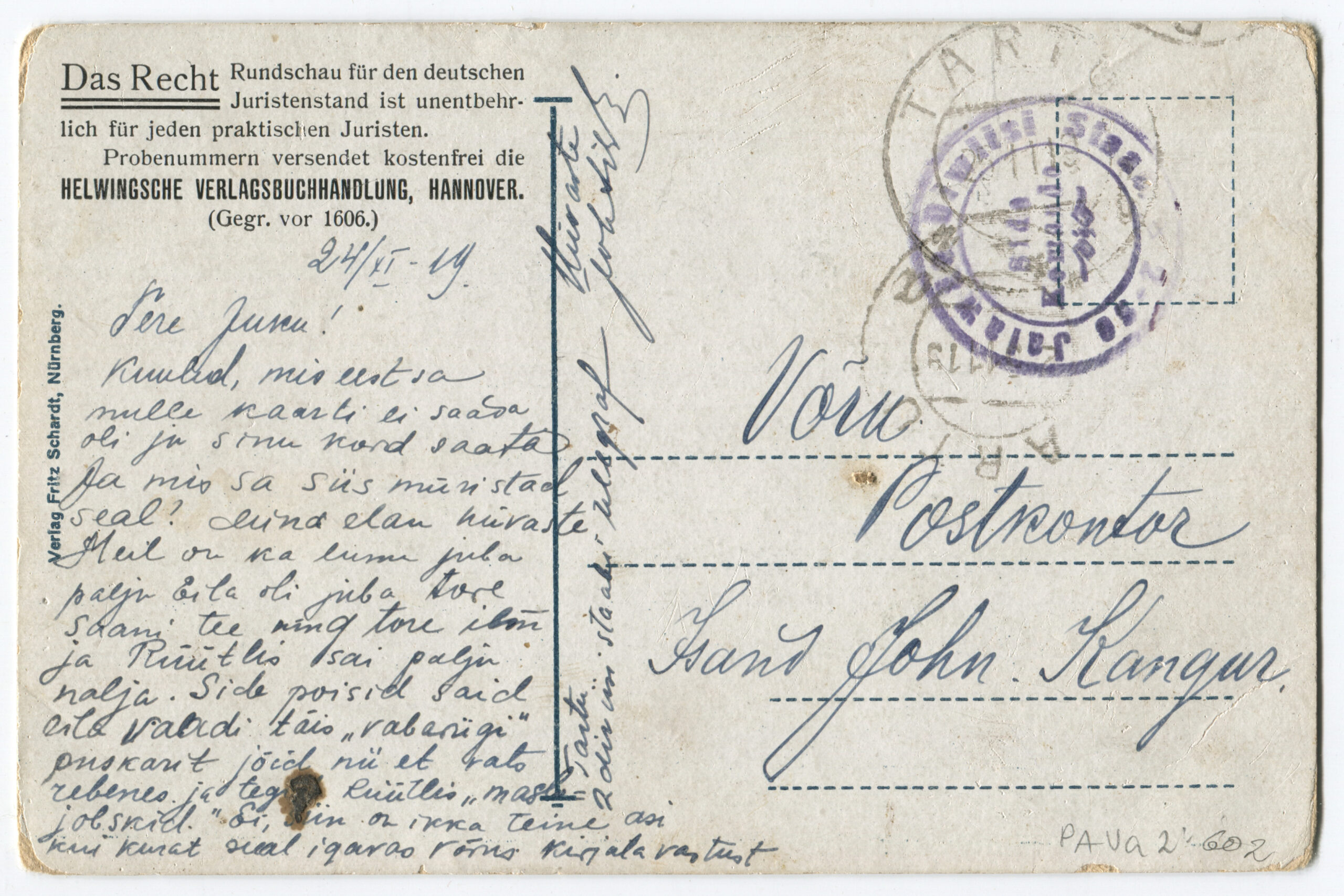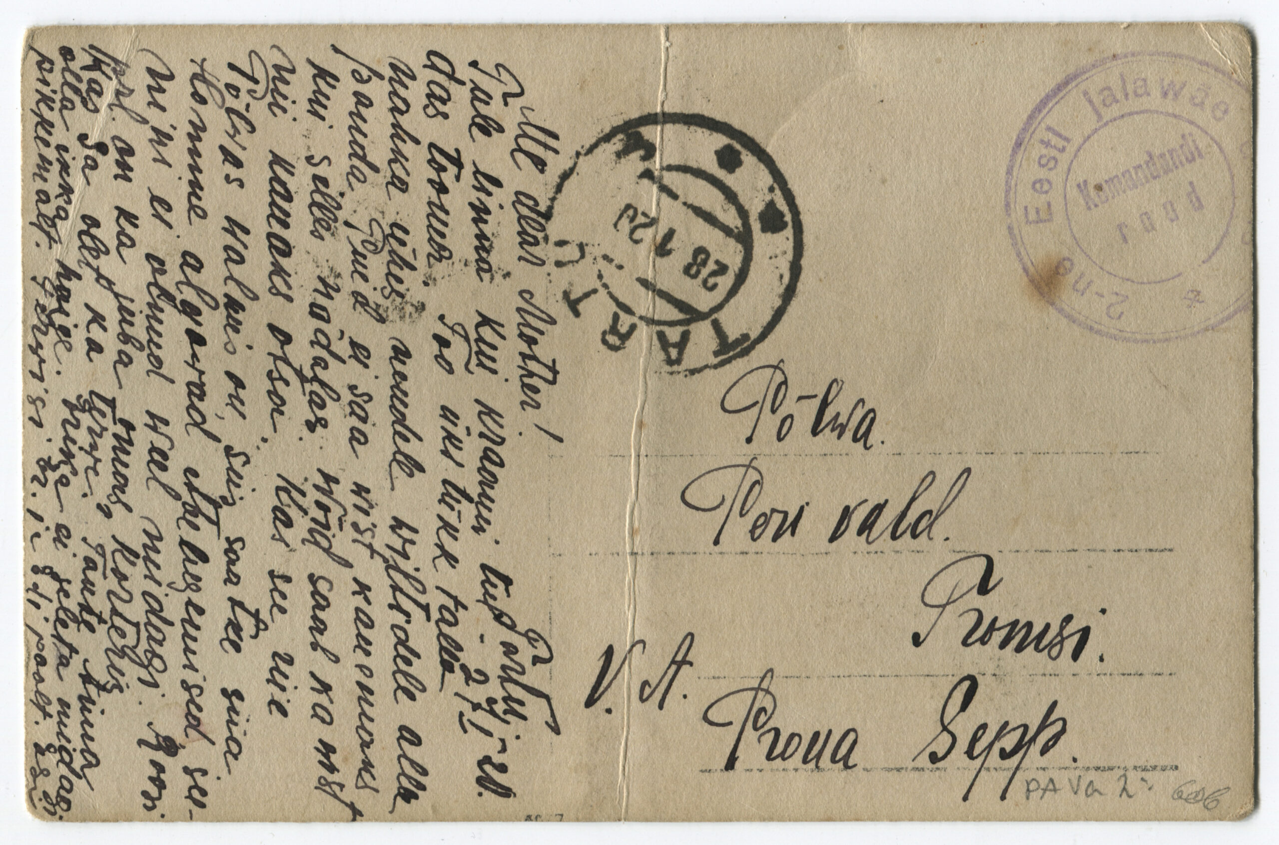 Kiri on saadetud päev pärast Vabadussõja lõppemist. Kalendertempel: Abja, 3.02.1920
