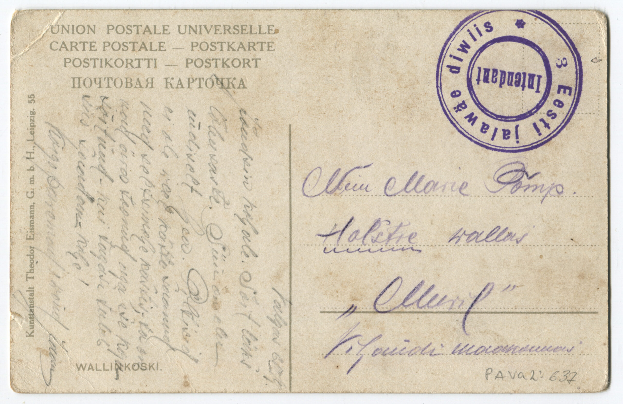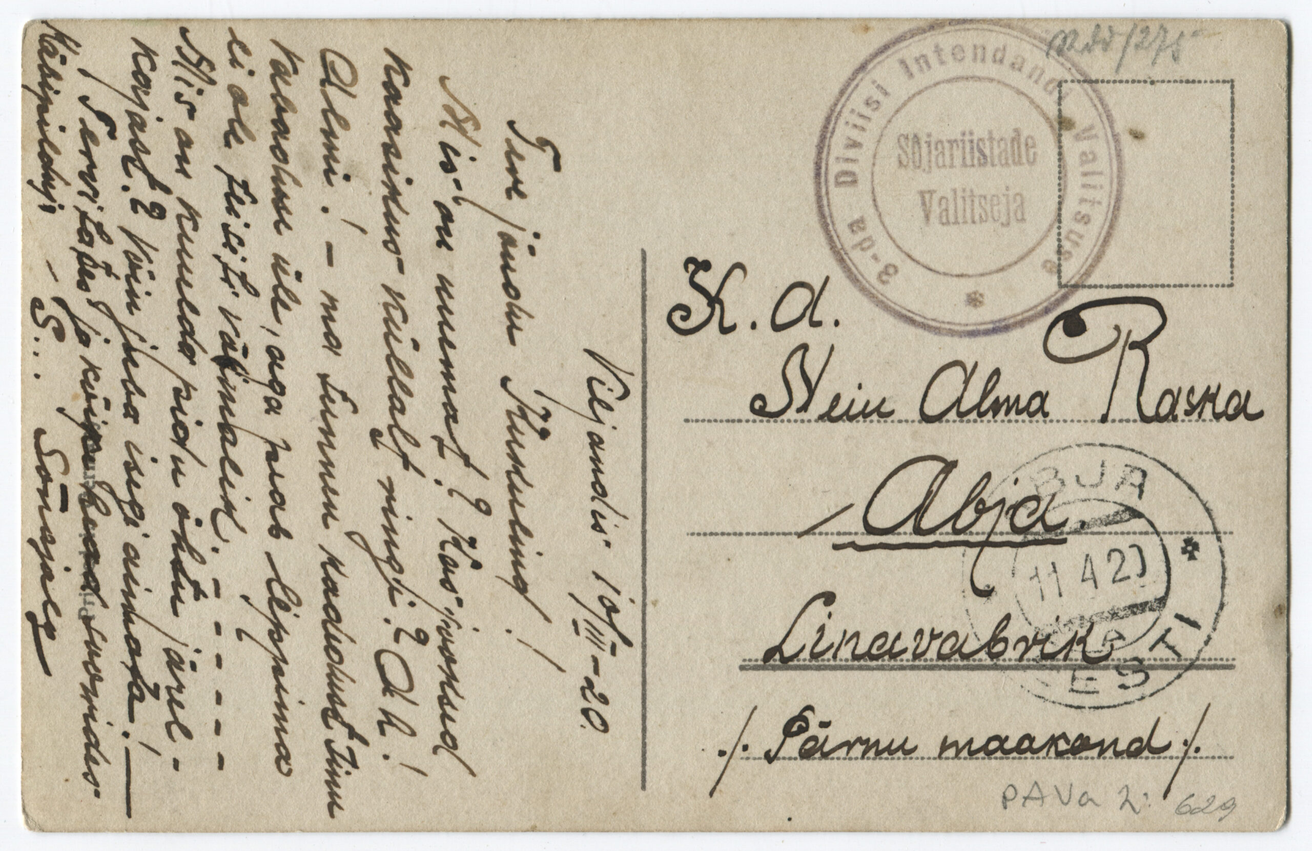 ERMTempel: 3 jalaväe diviisi Intendandivalitsus / Kirjadele