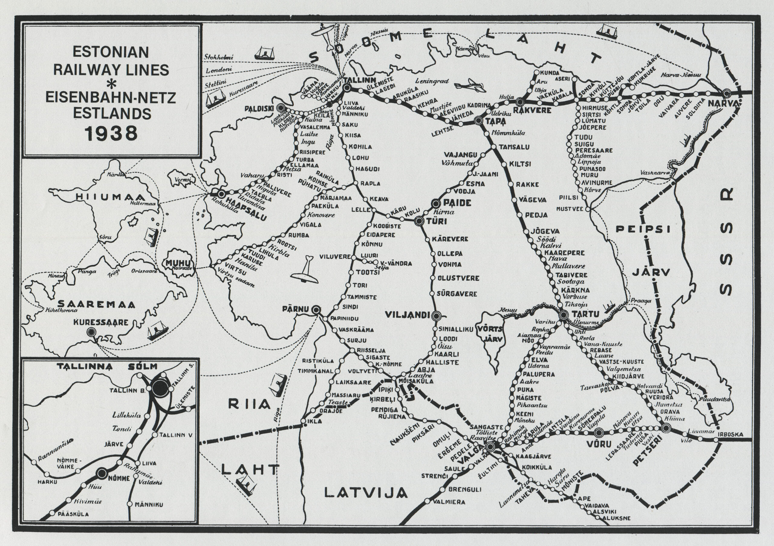ERMi kogu Väljavõte ajalehest Uus Eesti, nr 207, 31.07.1938 Eesti raudtee kaart 1938