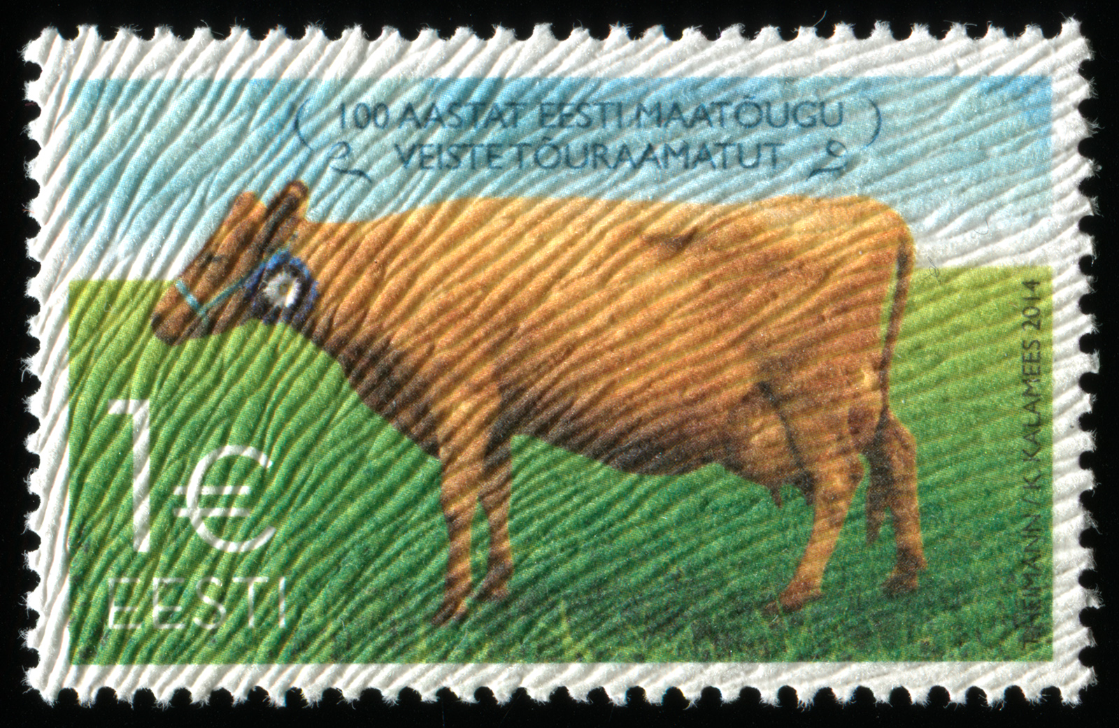 Esimene ebatraditsioonilise perforatsiooniga mark. Osaline perforatsioon 11¼ : 11¼, iseliimuv, trükiarv 915 000, trükikoda AS Vaba Maa100 aastat eesti maatõugu veiste tõuraamatut, 19.07.2014, kunstnik Triin Heimann