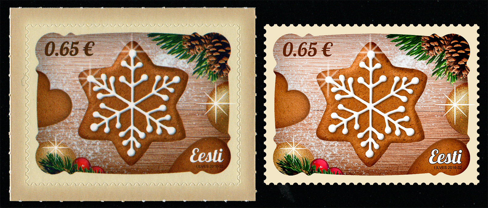 Trükiarv 20 000, trükikoda Cartor Security PrintingKaneelilõhnaliste jõulumarkide komplekt, 24.11.2017, kunstnik Indrek Ilves