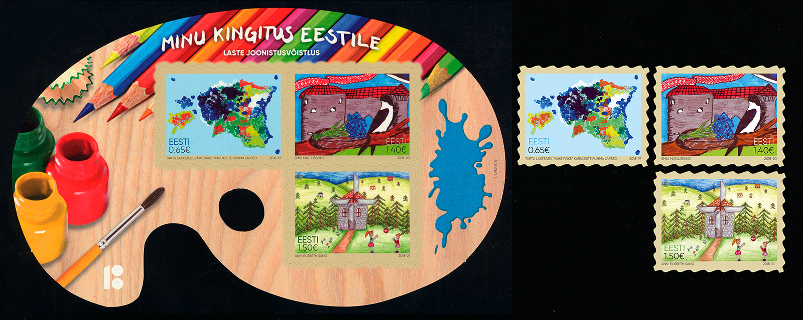 Vabariigi juubeliaastal anti meil välja margiplokk „Minu kingitus Eestile“ (1.09.2018). Seekord valmistasid kingituse lapsed. ERR Lastejaama, EV100 ja Omniva koostöös korraldatud joonistusvõistluse võidutöödest kujundas margiploki kunstnik Indrek Ilves, lisades sinna meeleoluks sinise värvilaigu, kust saab pintsliga värvi võtta, et sellega ise mõni pilt teha.