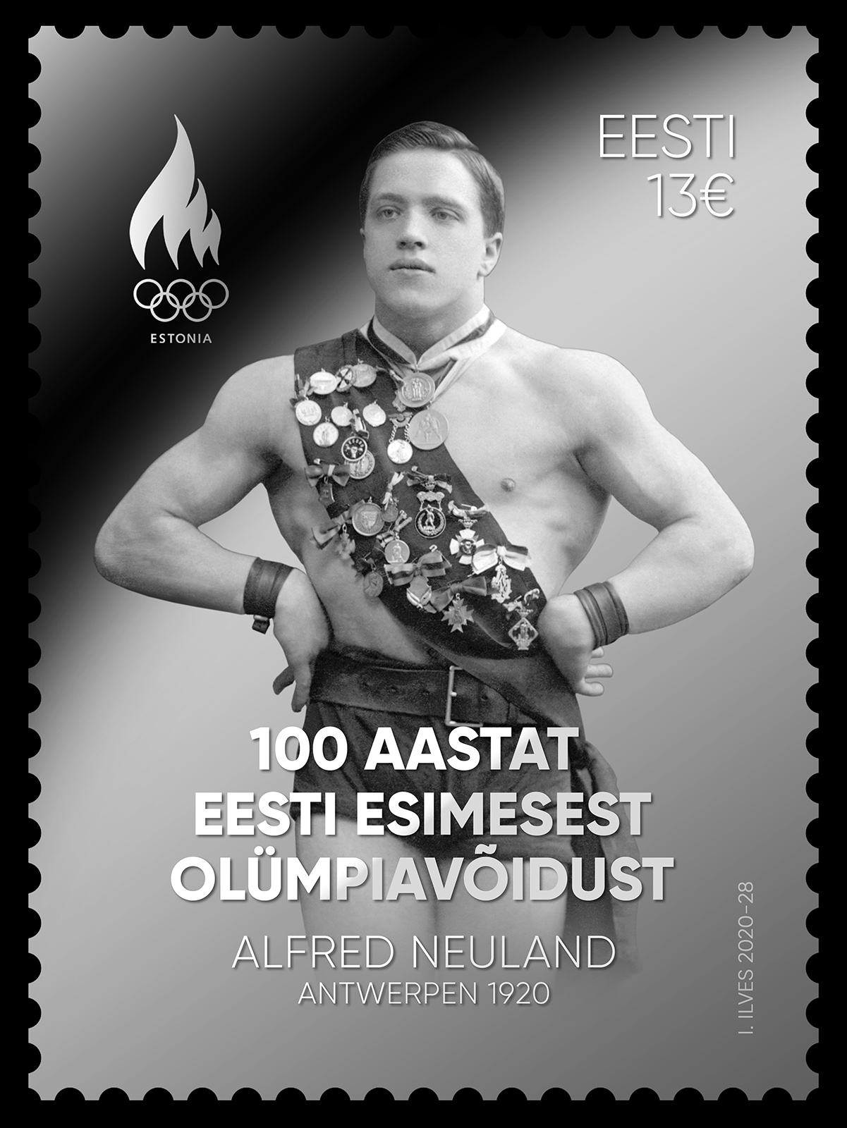 Trükiarv 12 000, trükikoda Cartor Security Printing100 aastat Eesti esimesest olümpiavõidust, hõbemark, 29.08.2020, kunstnik Indrek Ilves
