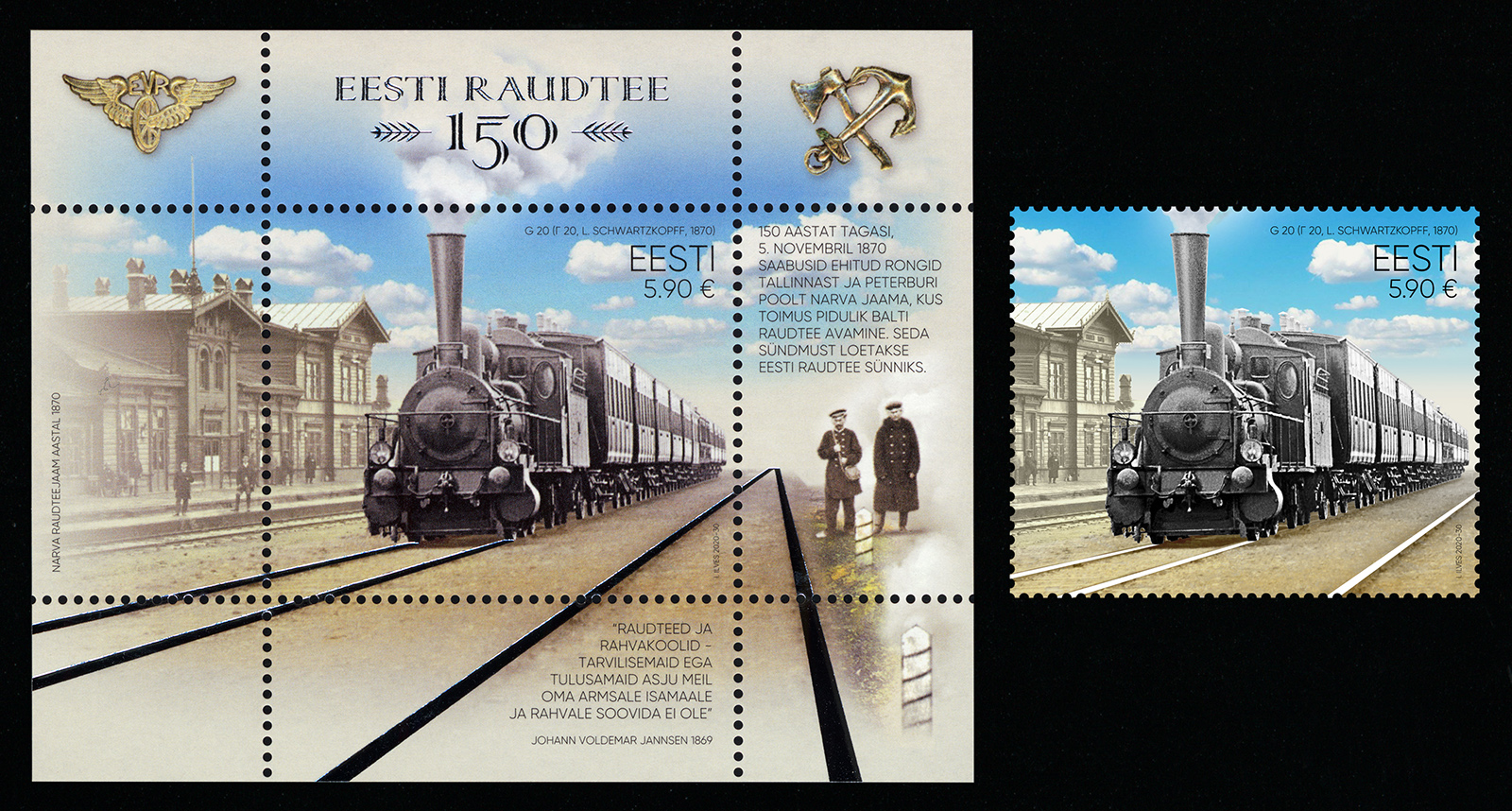 Trükiarv 204 000, iseliimuv, trükikoda Joh. EnschedéEesti Raudtee 150, 10.09.2020, kunstnik Indrek Ilves
