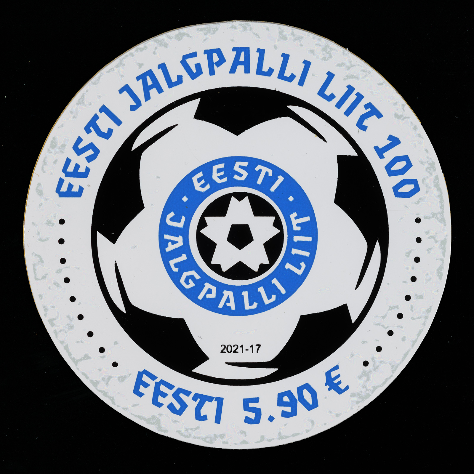 Trükiarv 12 000, trükikoda Cartor Security PrintingEesti Jalgpalli Liit 100, 30.08.2021, kunstnik Indrek Ilves