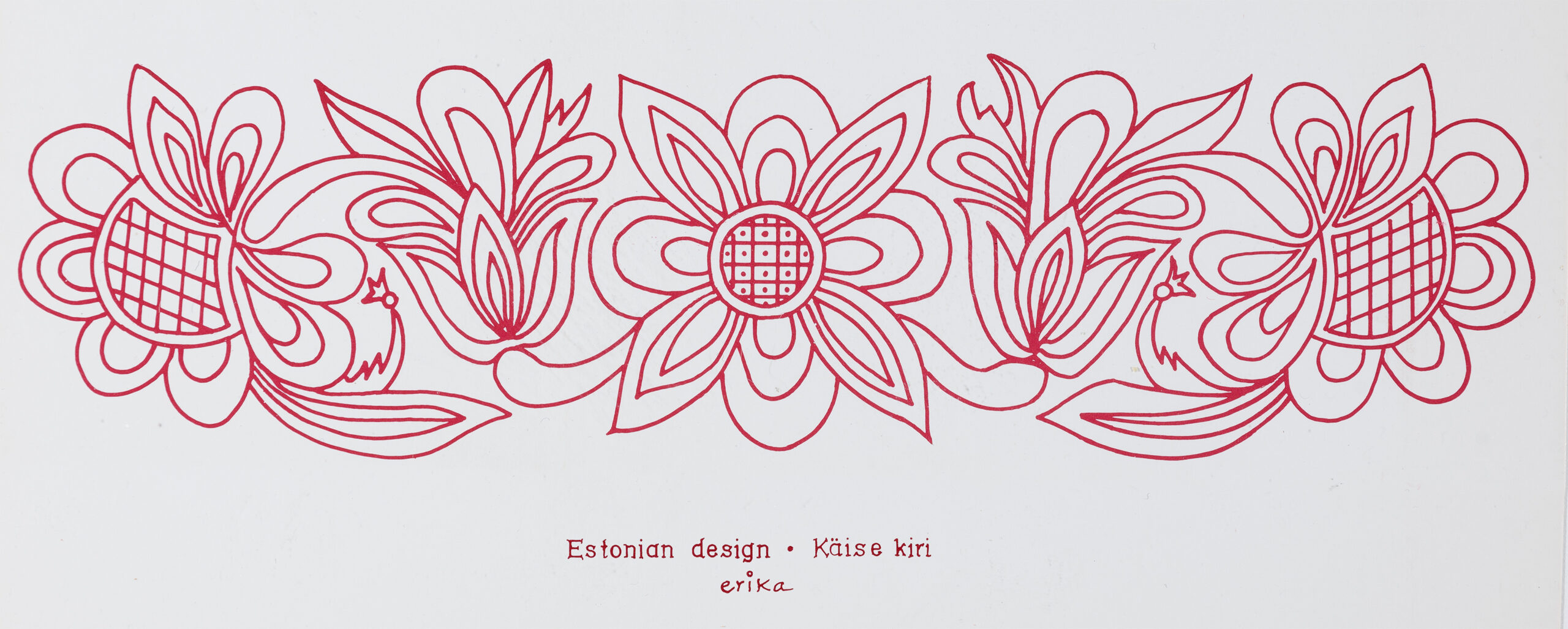Virtuaalnäituse sarja avavad Erika Kalami loodud kirjade-mustritega postkaardid, mis on inspireerinud õpilasi looma juurde joonistuslehti erinevate kihelkondade mustrite põhjal.