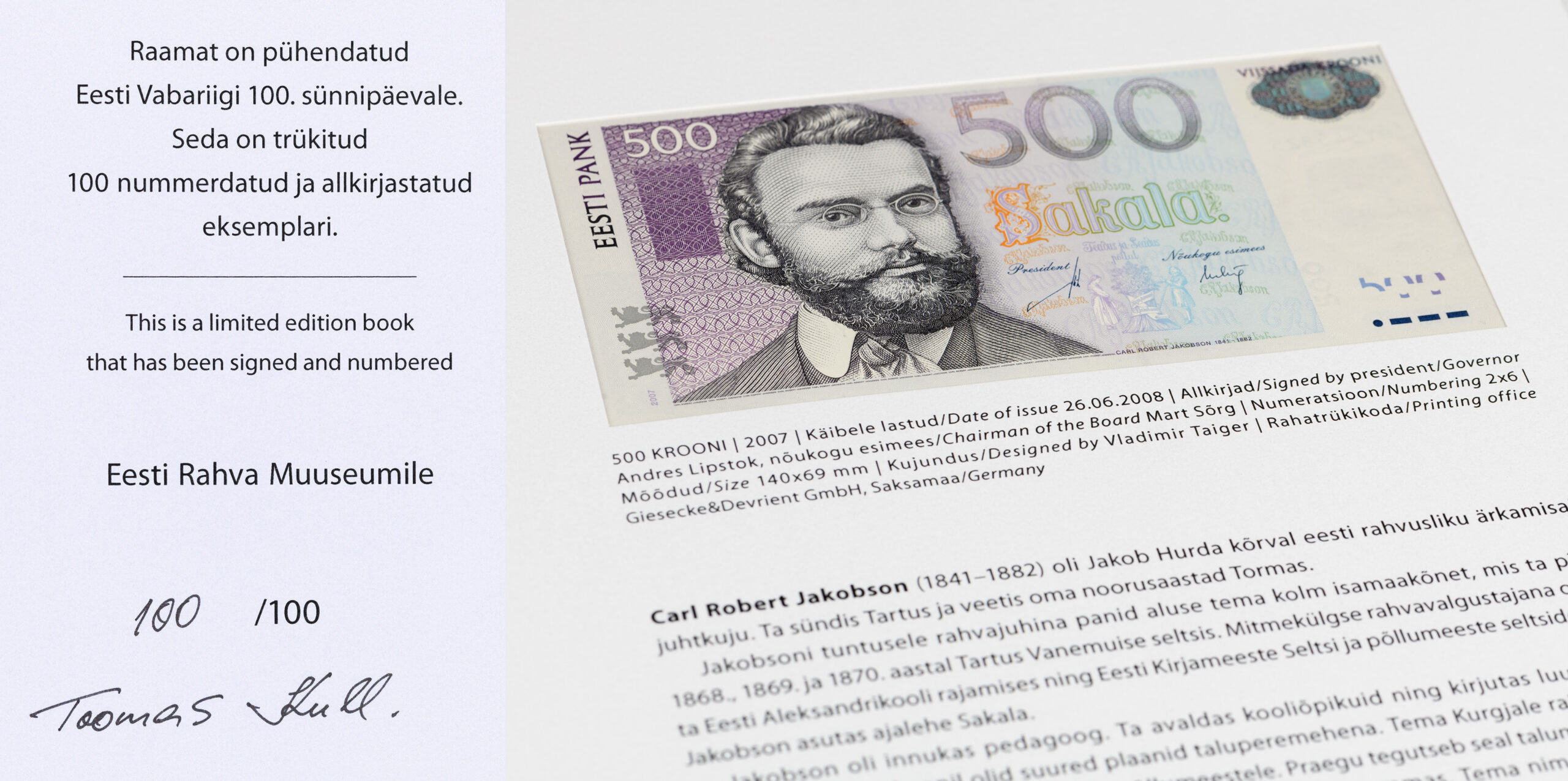 2018. aastal ilmus Toomas Kullil, kes kogus Eesti krooni rahatähti, Eesti Vabariigi 100. aastapäevale pühendatud raamat „Eesti krooni originaalpangatähed 1991–2007″. Sajast ilmunud raamatust suurema osa kinkis autor välismaistele Eesti seltsidele, majadele ja raamatukogudele, aga ka kohalikele asutustele. Raamatus on kaheksa Eesti krooni paberraha.