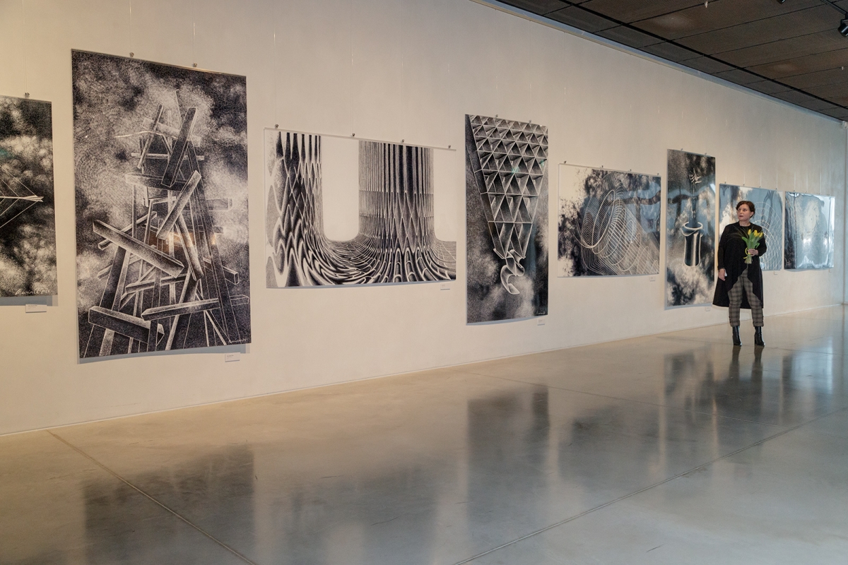 Näitusel „Kübaratrikk” on esitletud suurele pleksiklaasile tehtud markerijoonistused. Oma olemuselt meenutavad need trükkimiseks ettevalmistatud graafikaplaate. Pleksiklaasi on kraabitud enne joonte ja värvidega katmist, mille tulemusel on tekitatud huvitav krobeline faktuur. See annab joonistustele omajagu põnevat sügavust. Kunstiteoste kosmiline mastaapsus ja päevasündmustest tingitud süngus rabab vaatajat kohe.